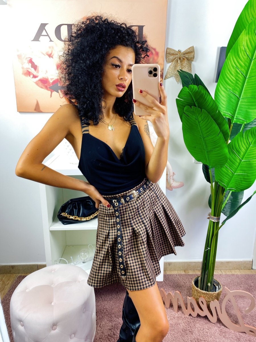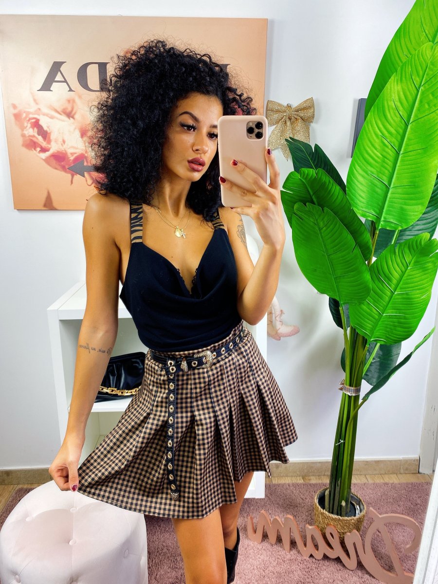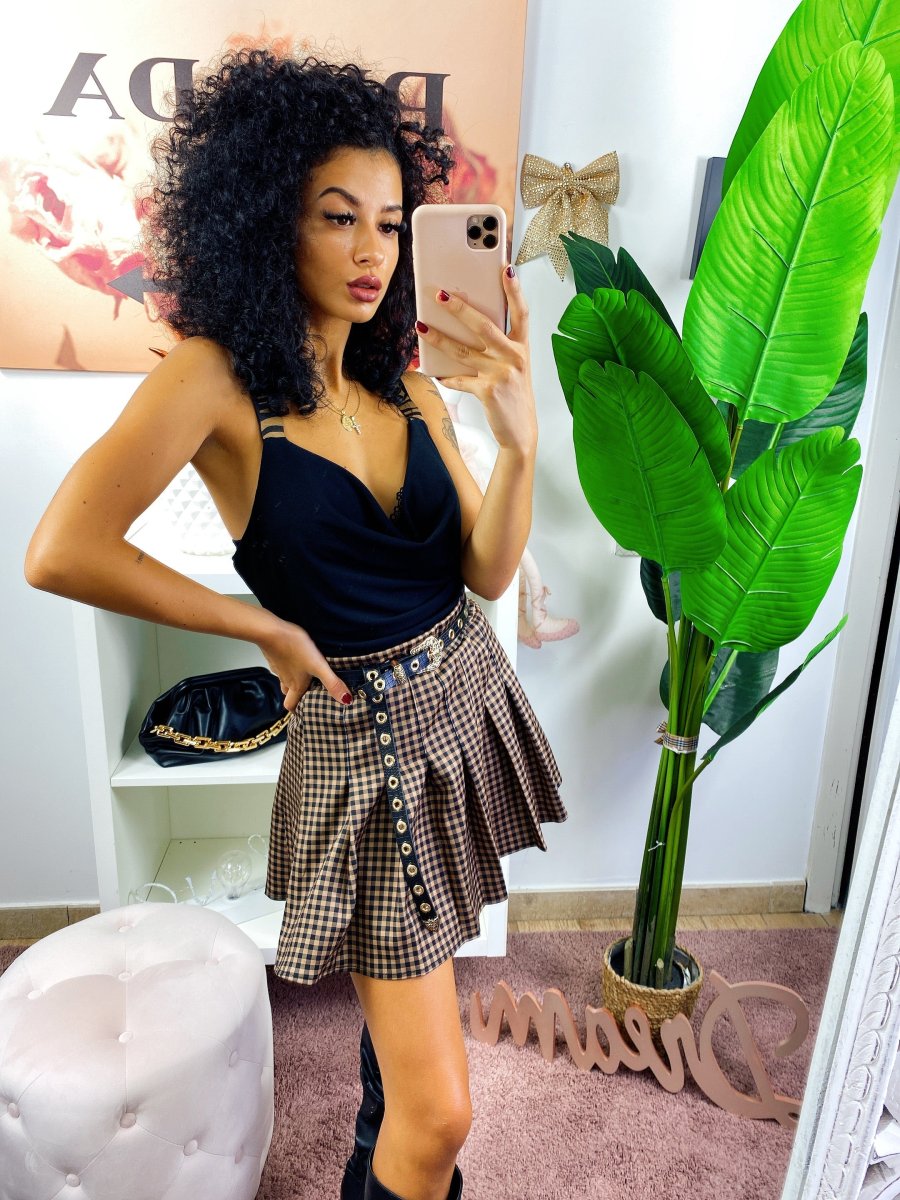 Recensisci per primo “Gonna a pieghine a quadri camel e nero”