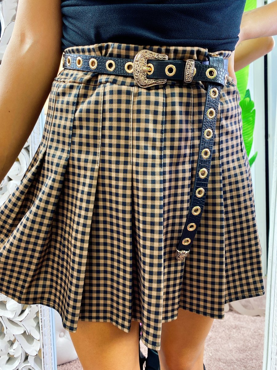 Gonna a pieghine a quadri camel e nero