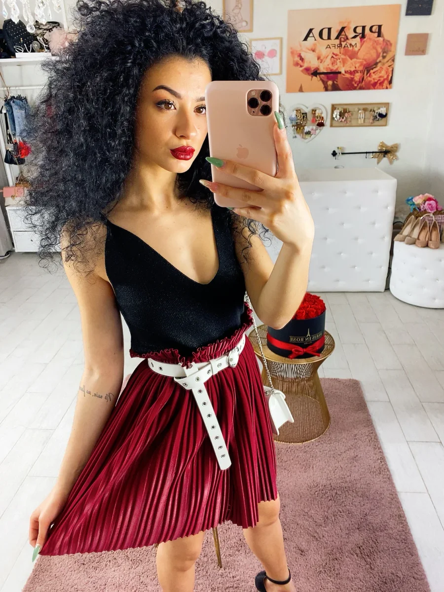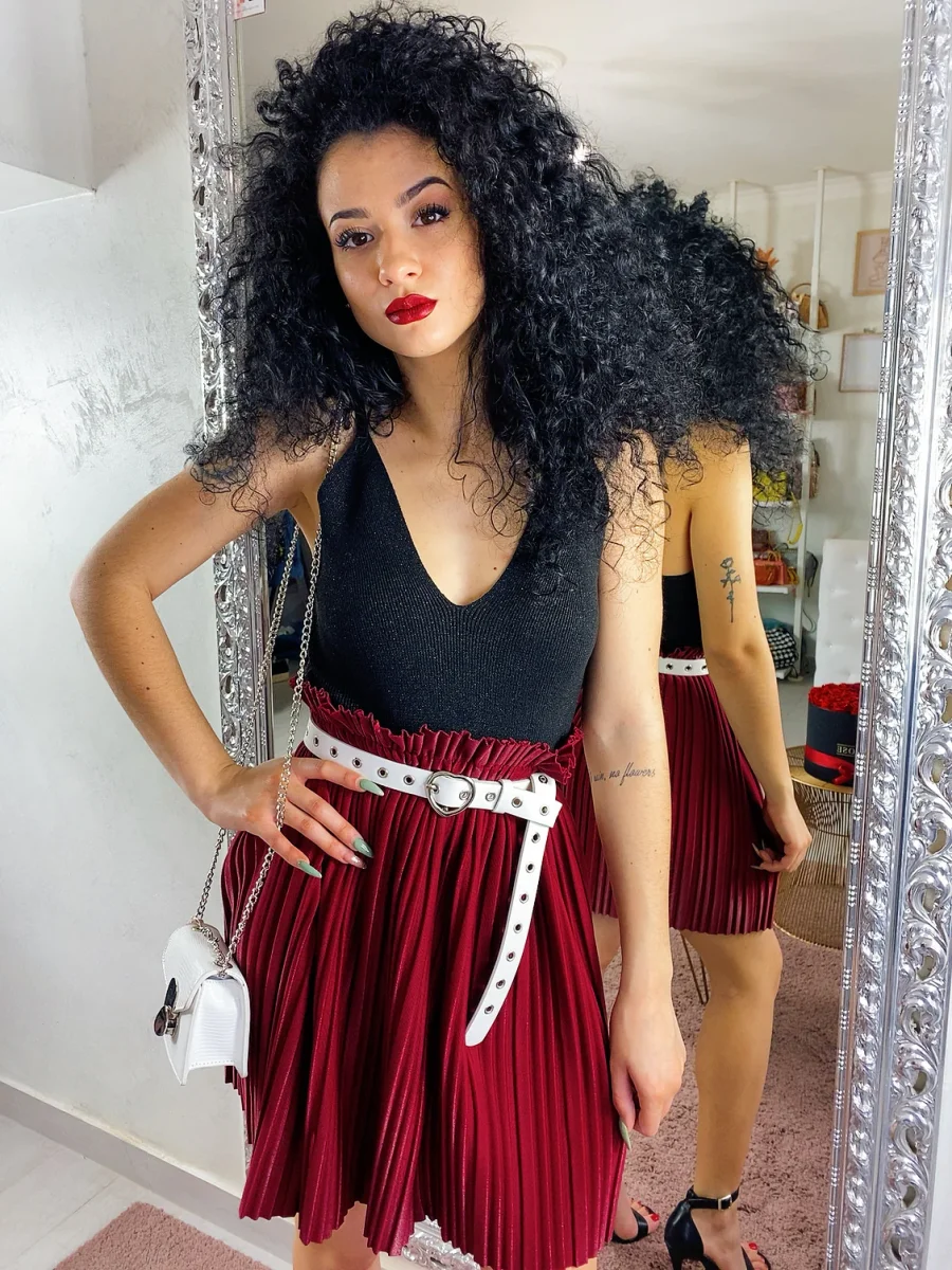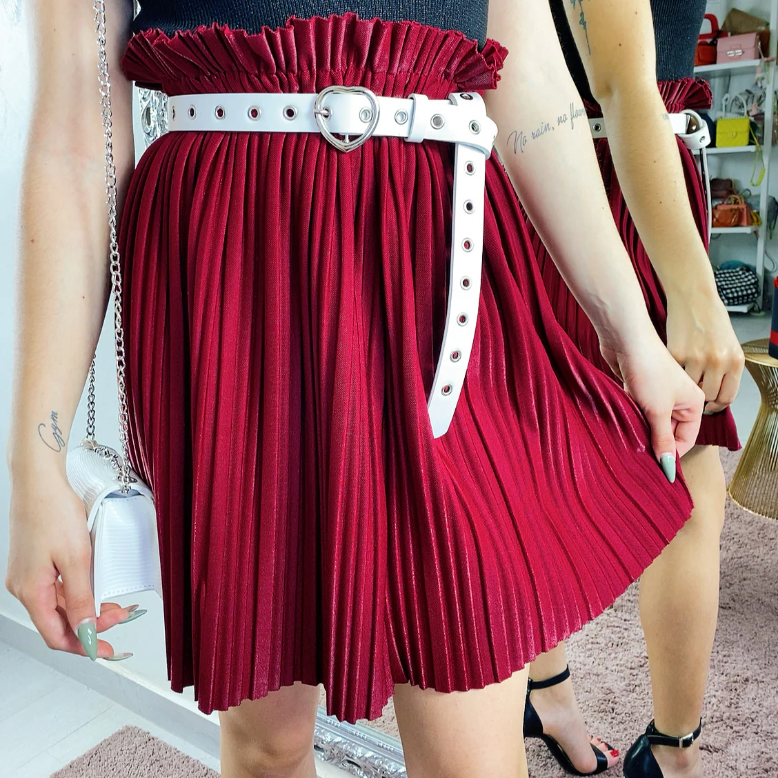 Gonna in tessuto rigido, elasticizzato in vita. Bellissima con queste pieghine. Abbinala con una cintura