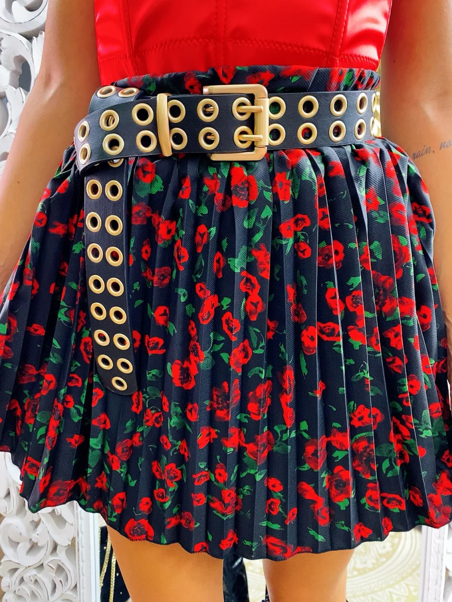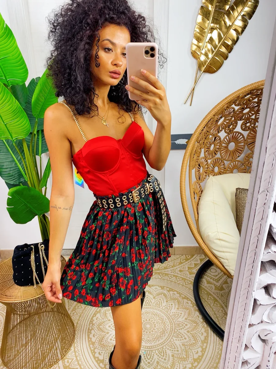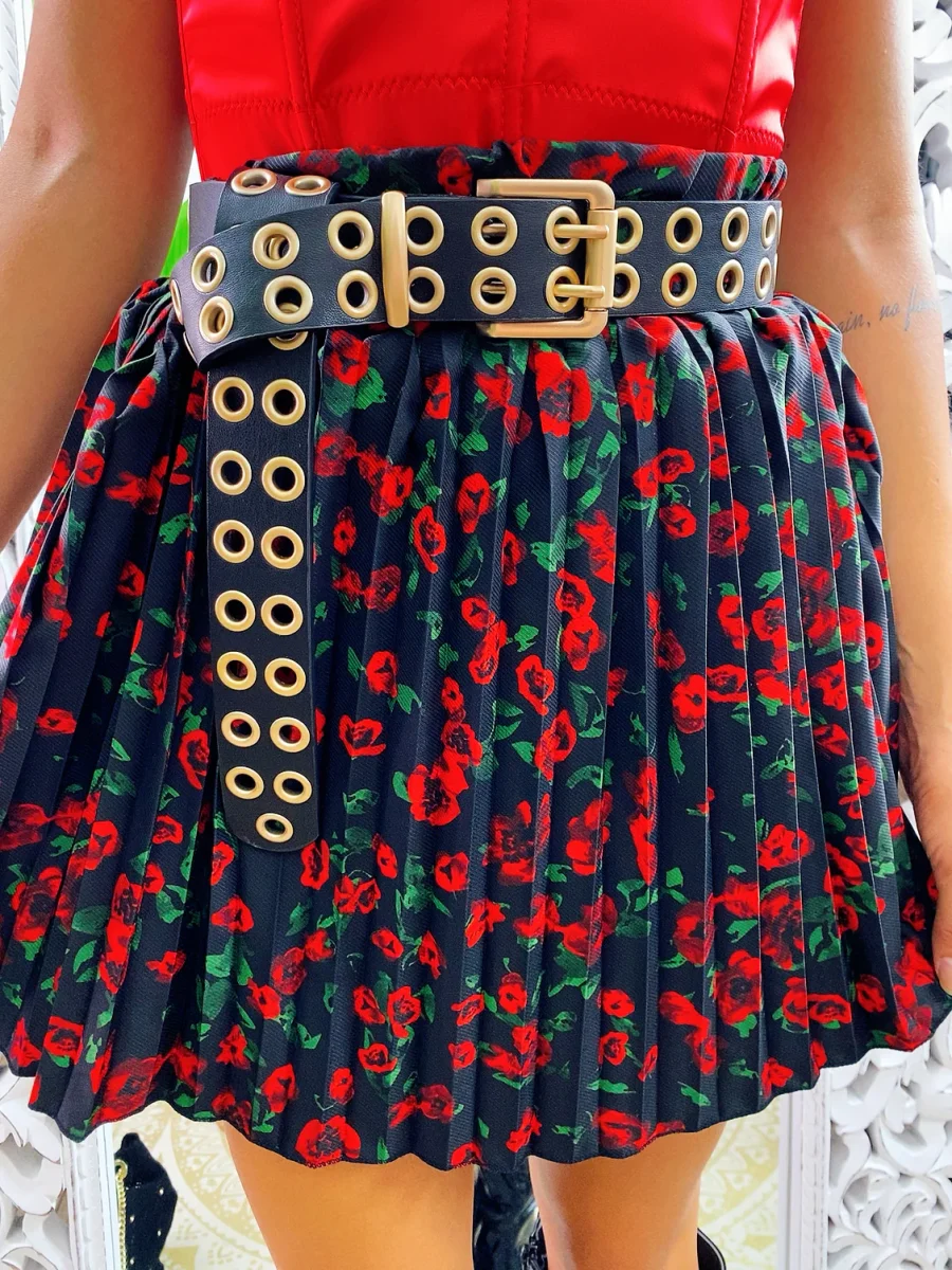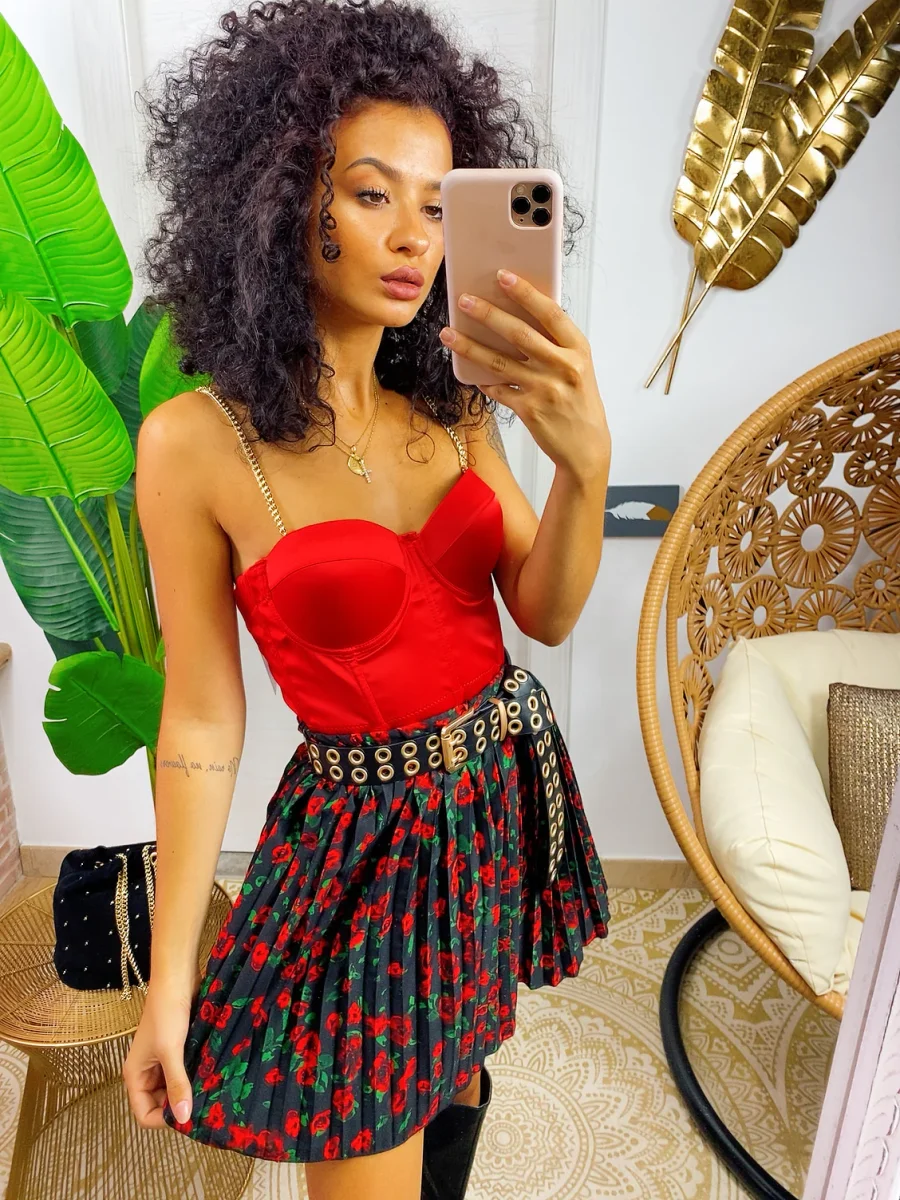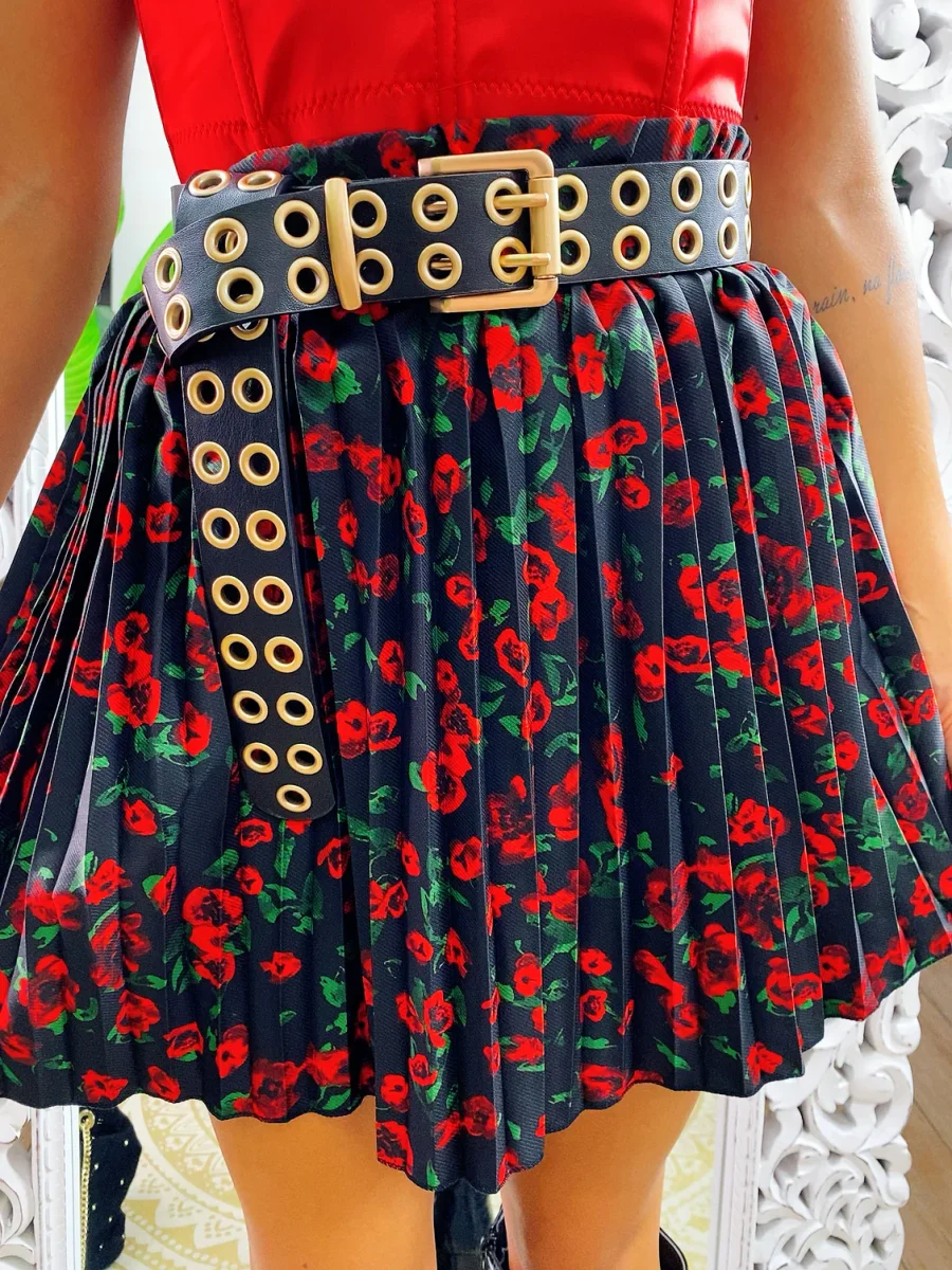 Gonna a balze in tessuto fiorato. La gonna è dotata di un elastico in vita così da renderla adattabile a tutte le taglie. La gonna è foderata e con pantaloncino nello stesso tessuto