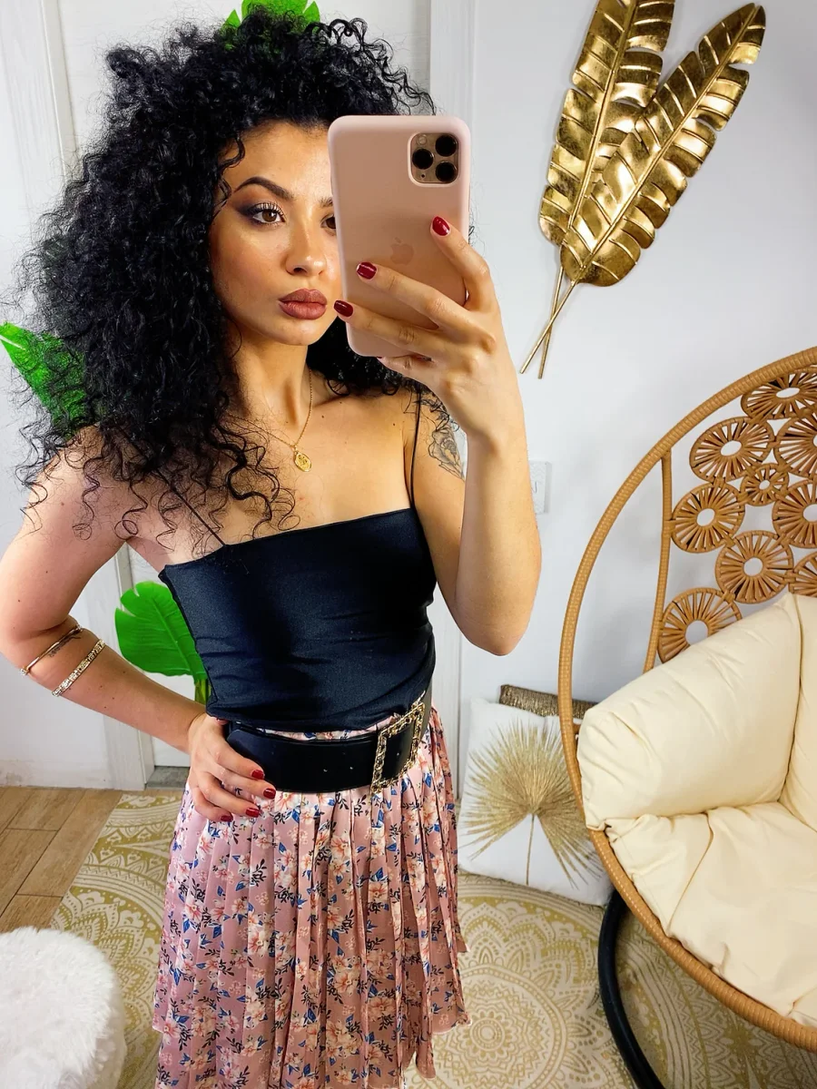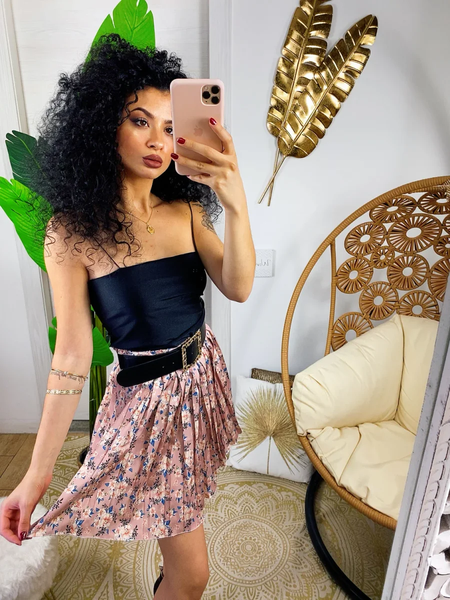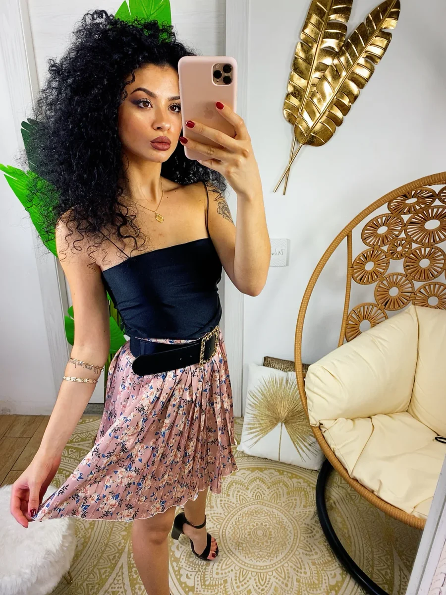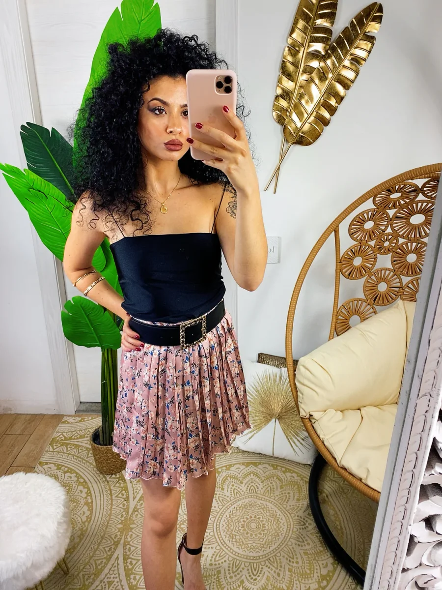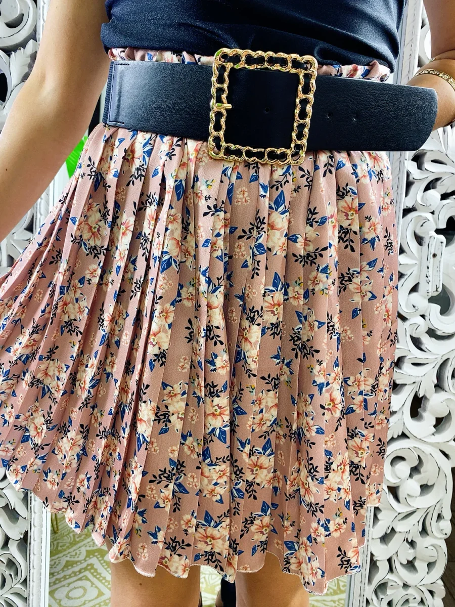 Gonna in tessuto leggero con elastico in vita. Tessuto a pieghine con trama a fiorellini. Taglia unica