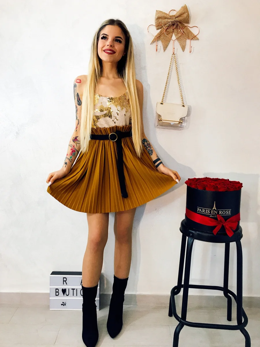 Gonna a pieghine senape