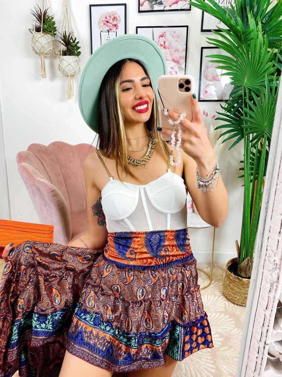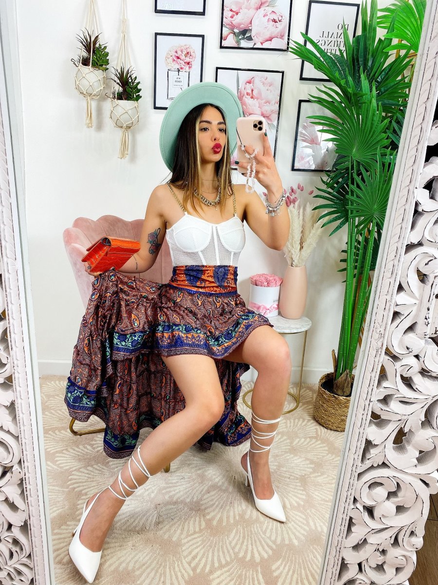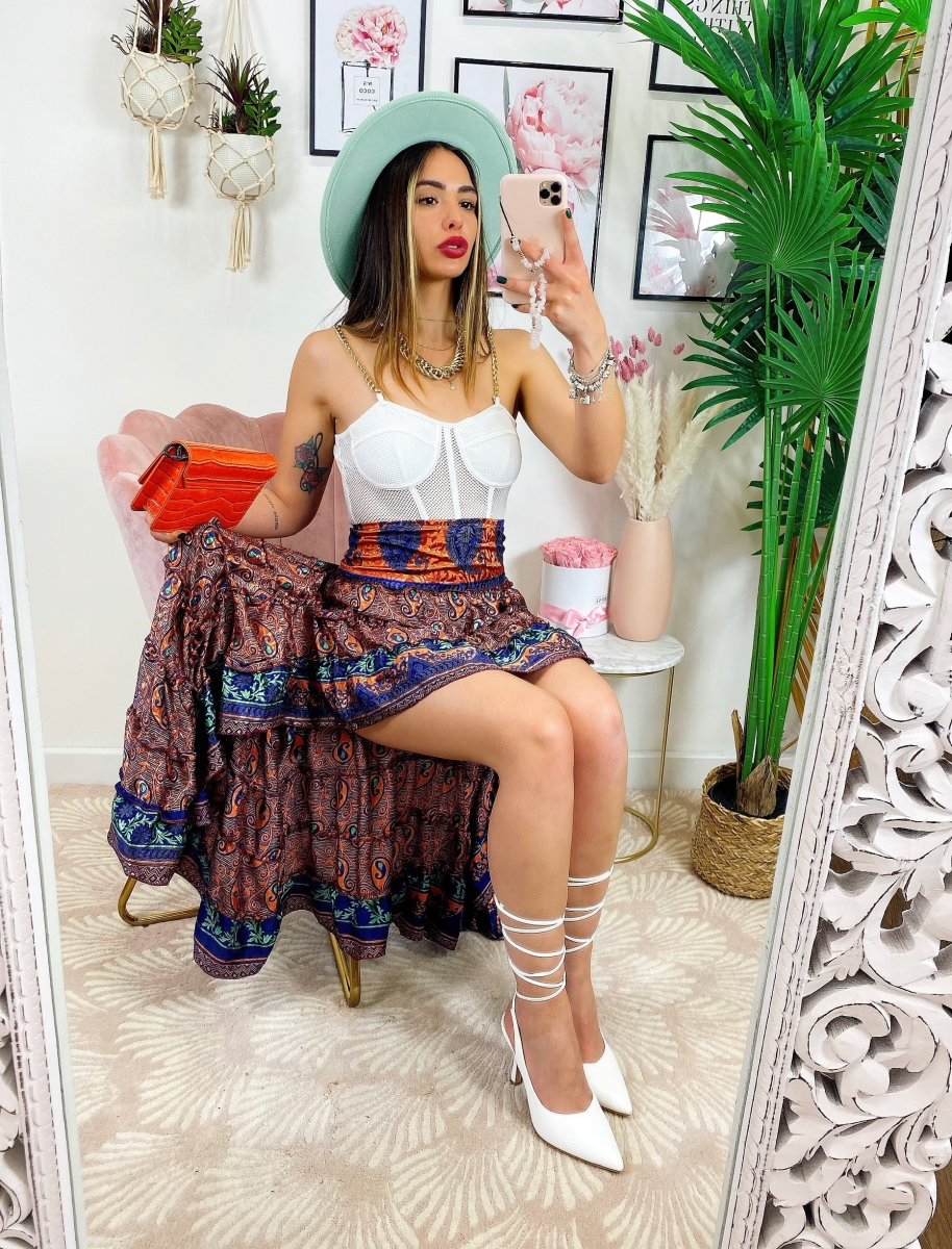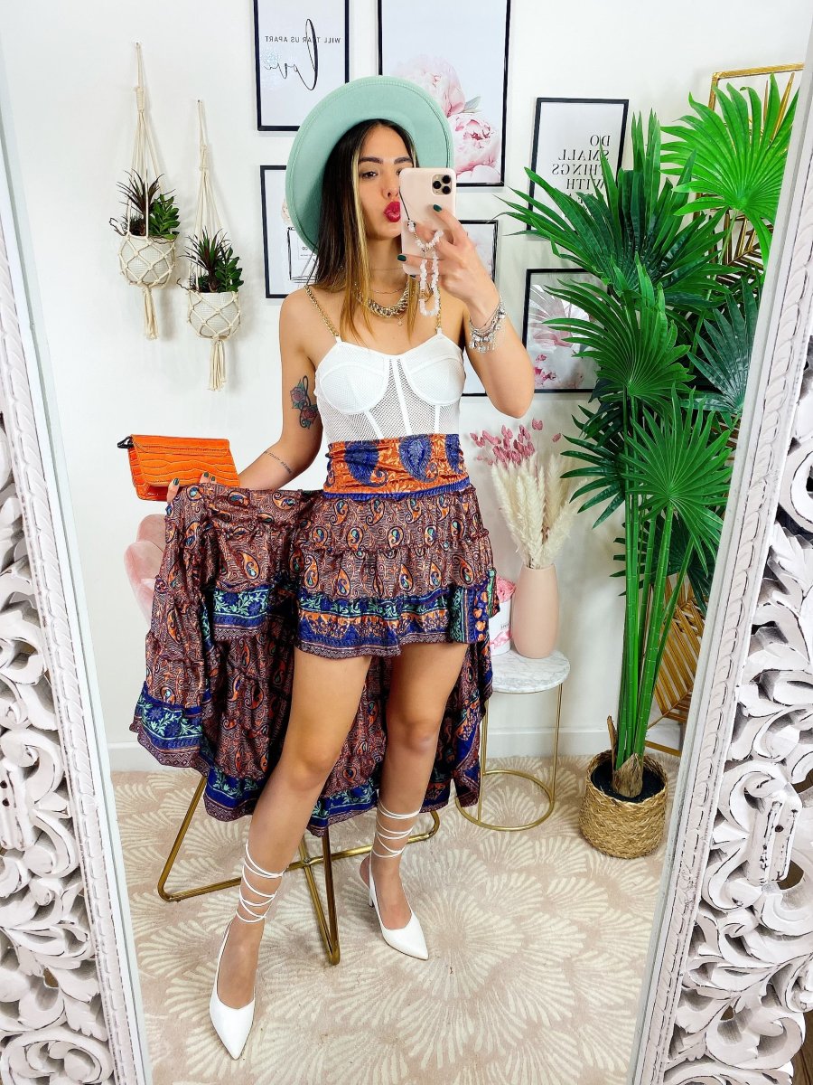 Gonna asimmetrica Estiva con elastico in vita e sul seno.