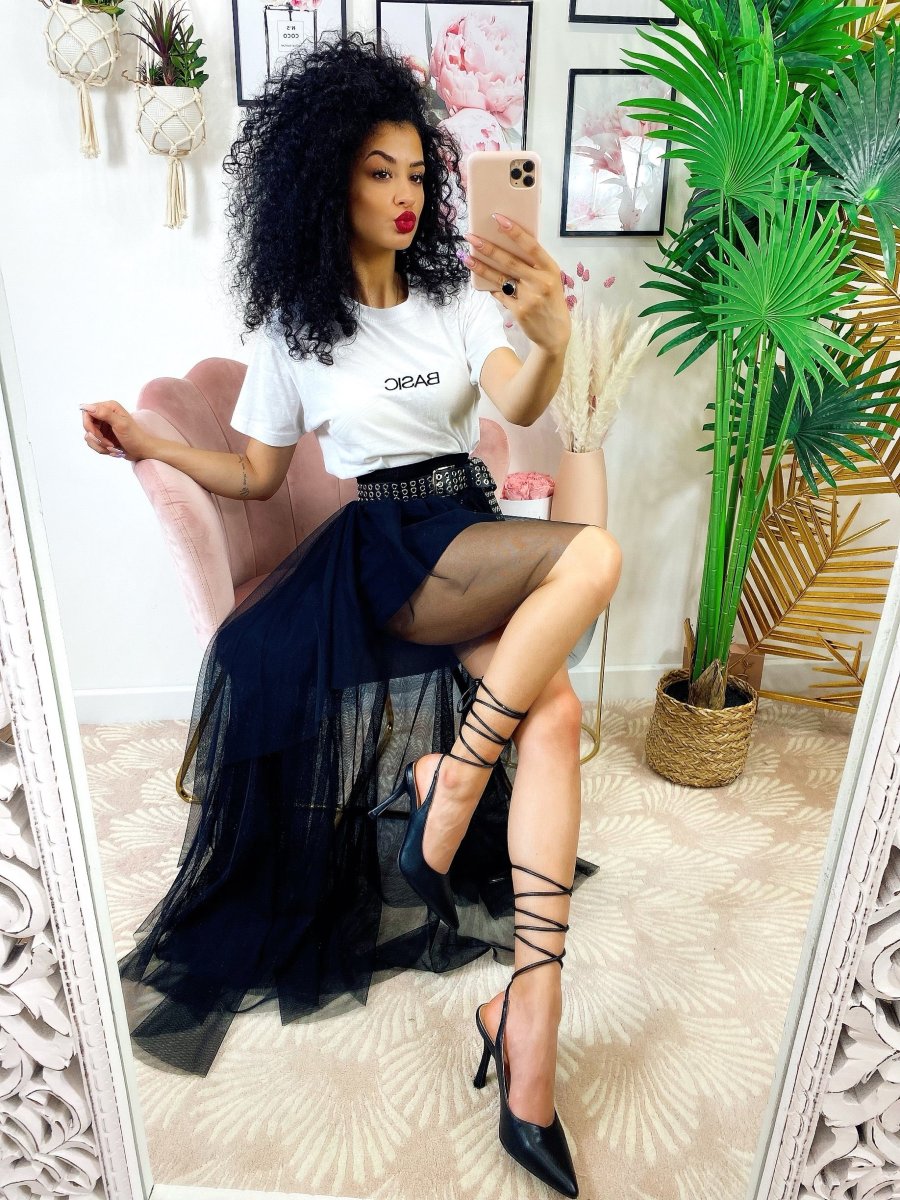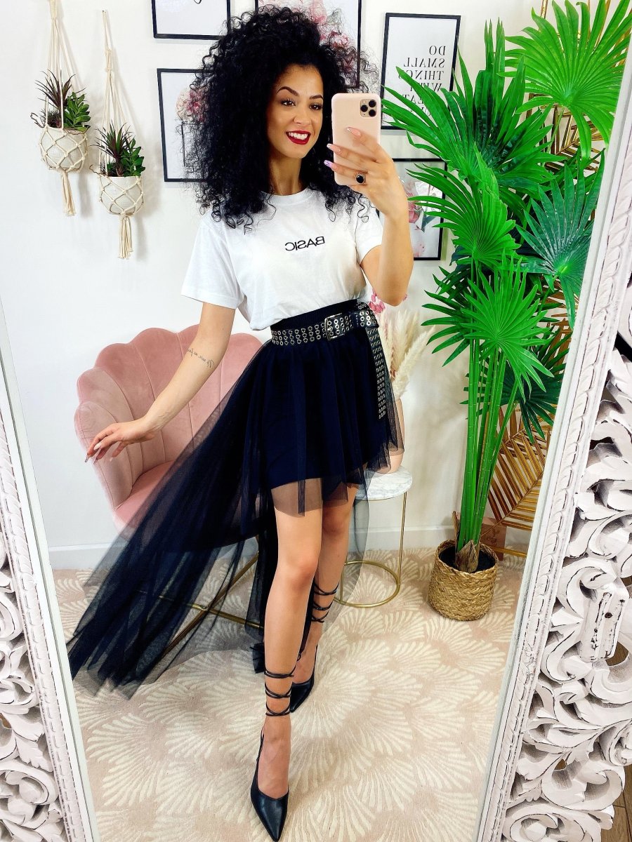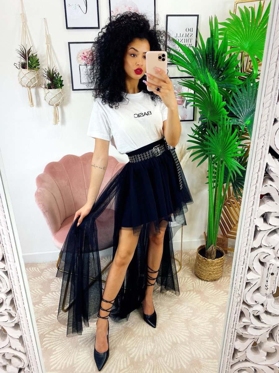 Gonna asimmetrica Estiva con elastico in vita e cintura a fiocco. Colore acceso brillante