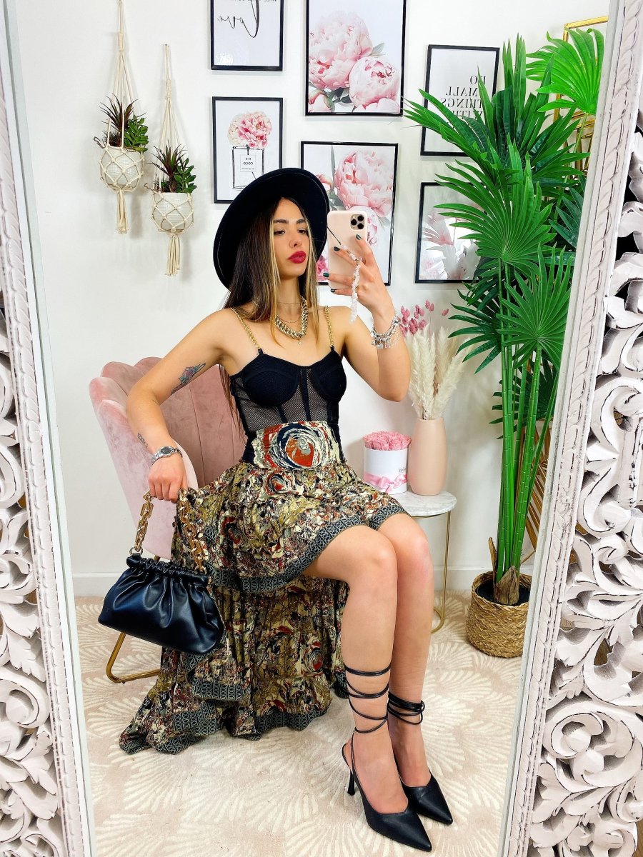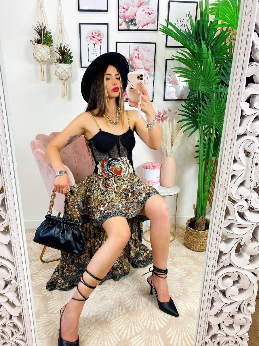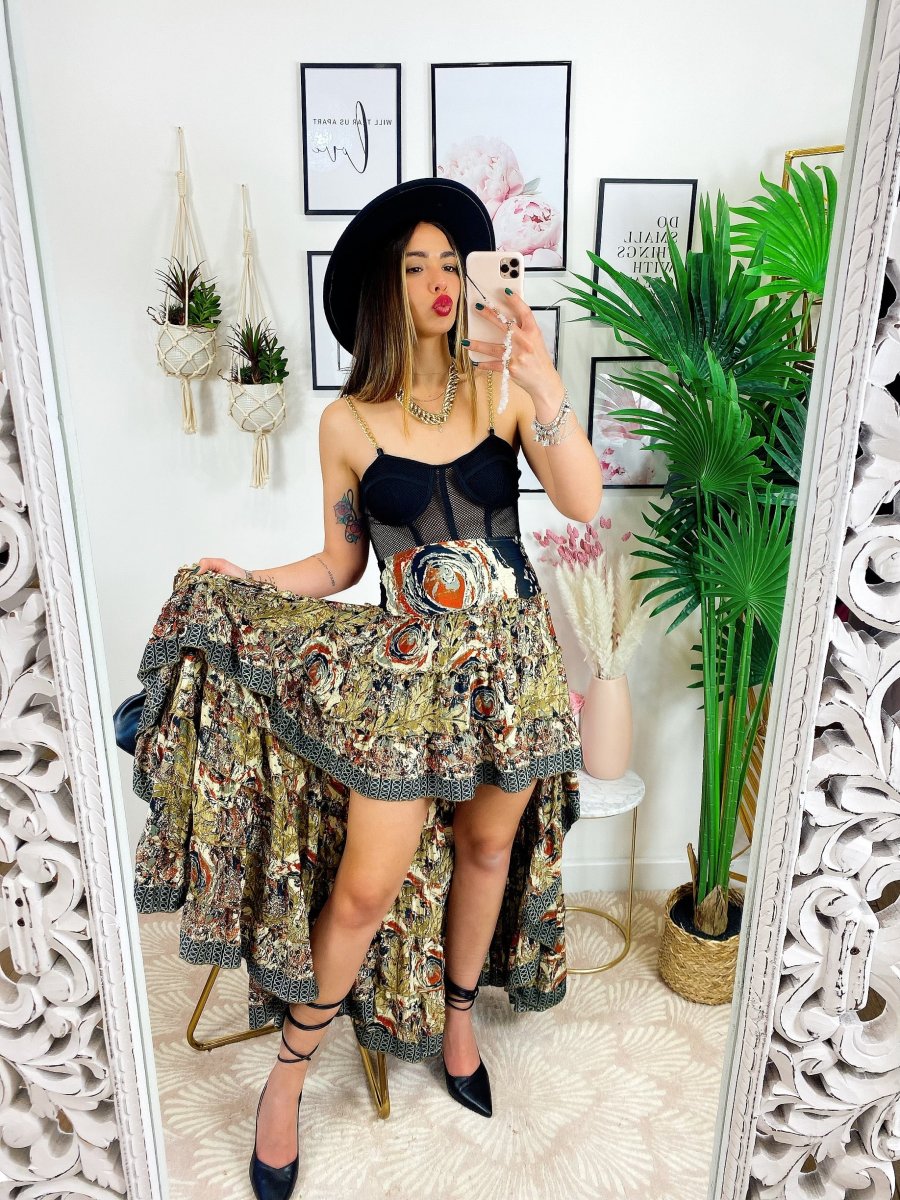 Gonna asimmetrica Estiva con elastico in vita e sul seno.