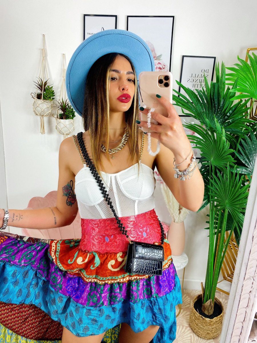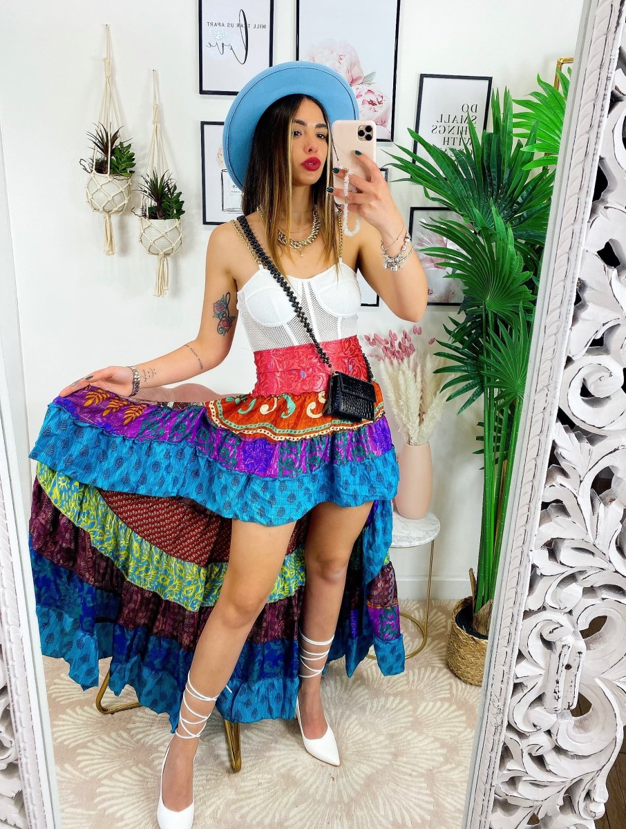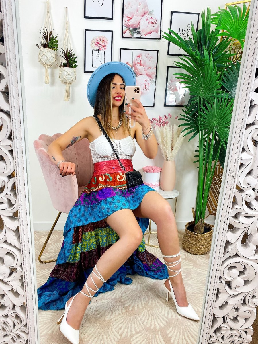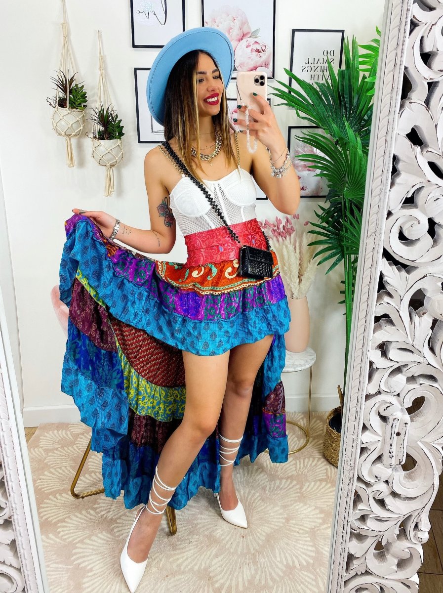Gonna asimmetrica Estiva con elastico in vita e sul seno.