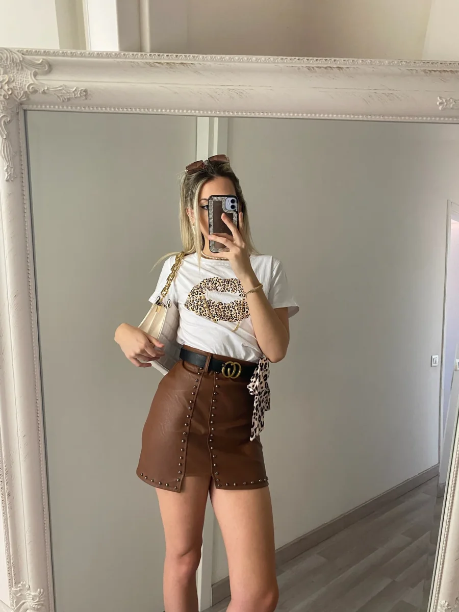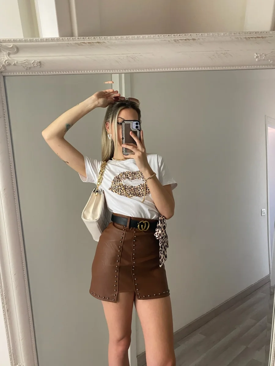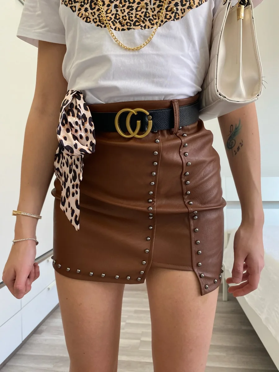 Gonna con borchie e cintura Vestibilità regolare.