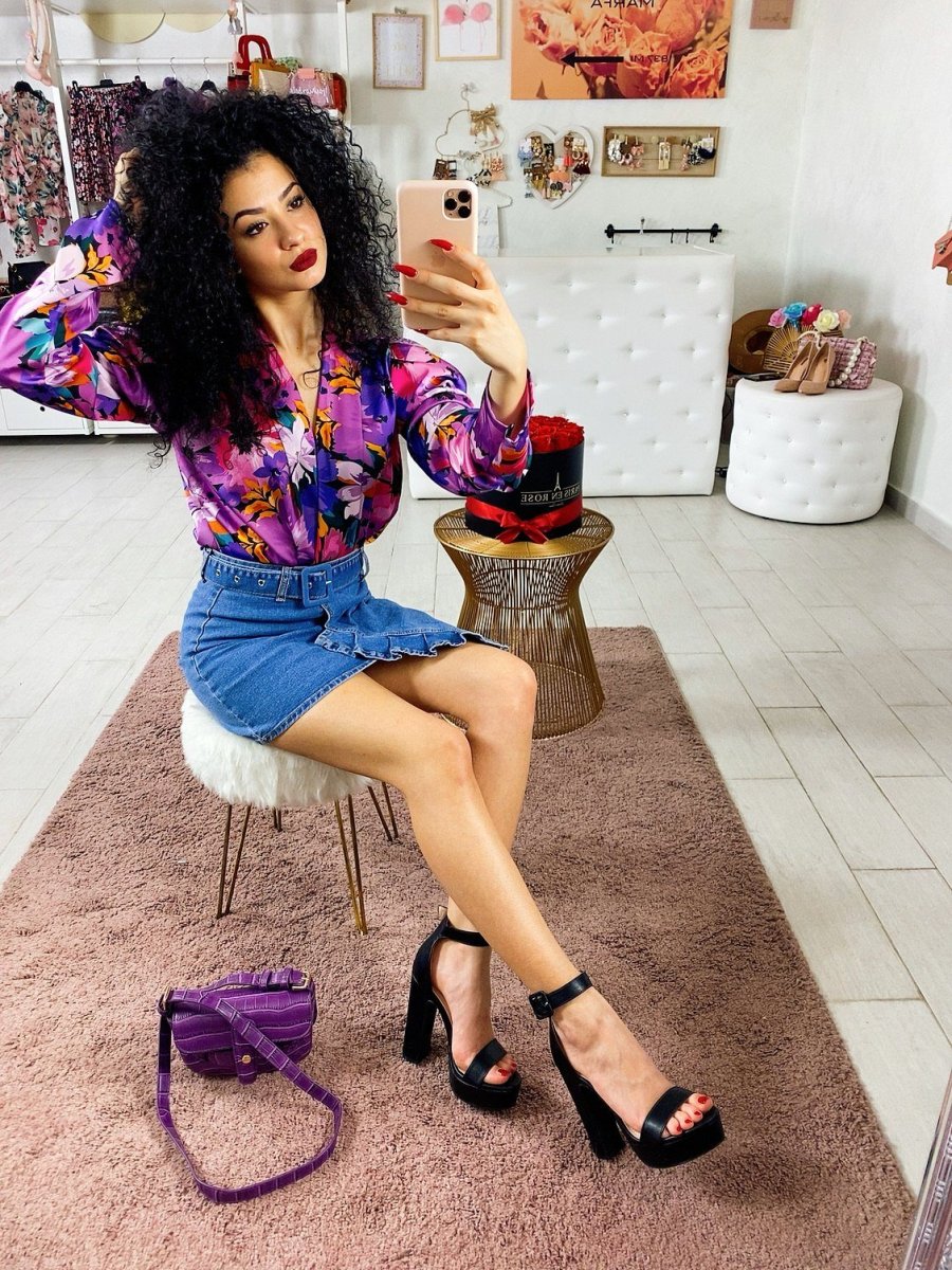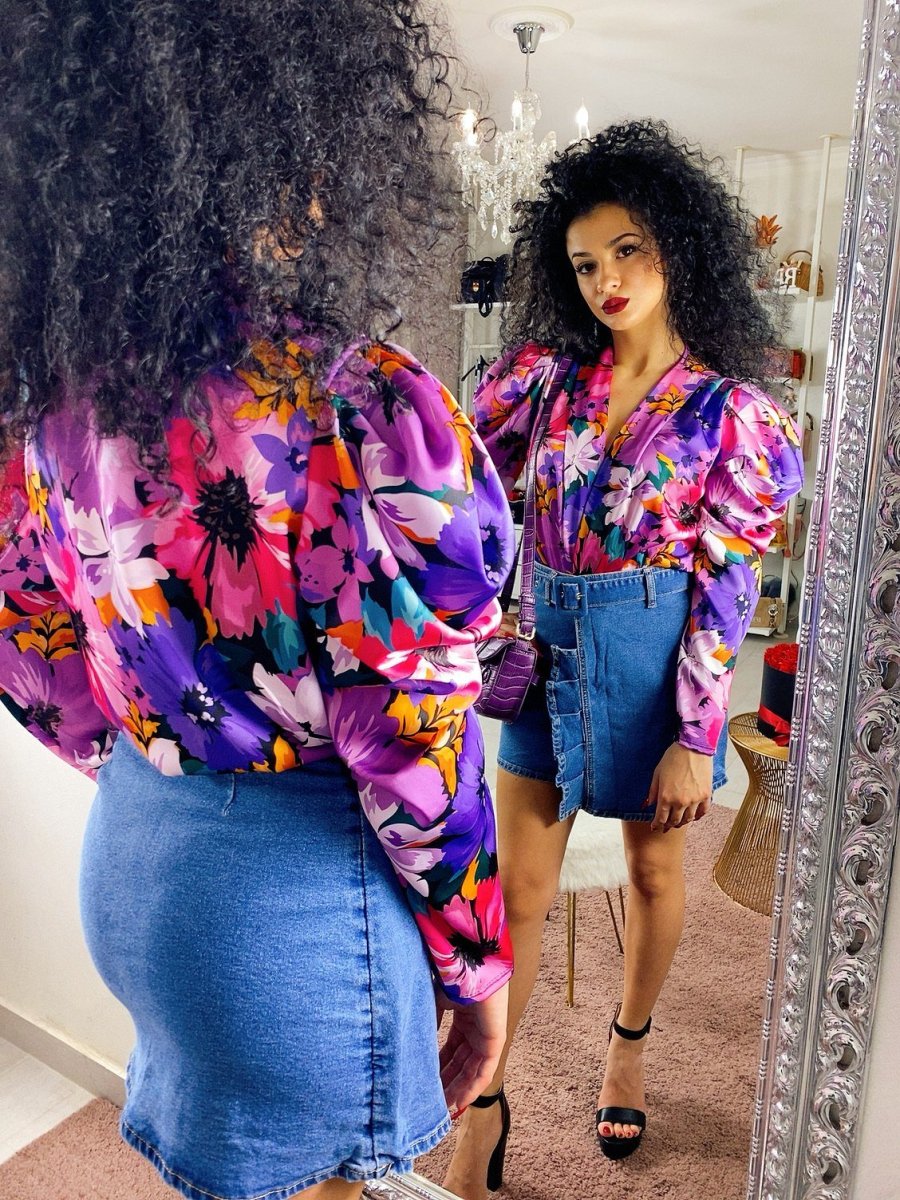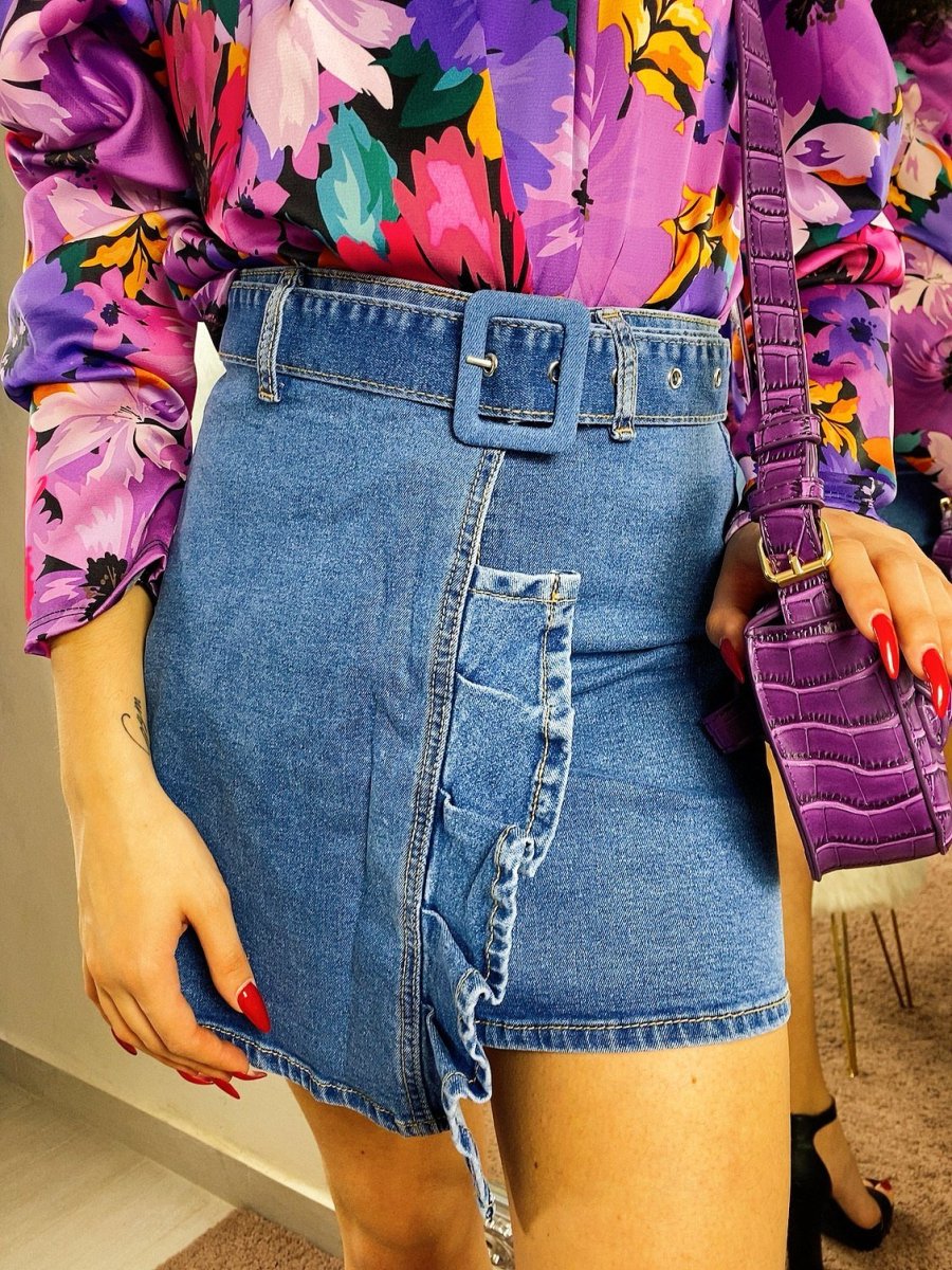 Gonna di jeans dalla vita regolare inclusa la cintura sempre in jeans .