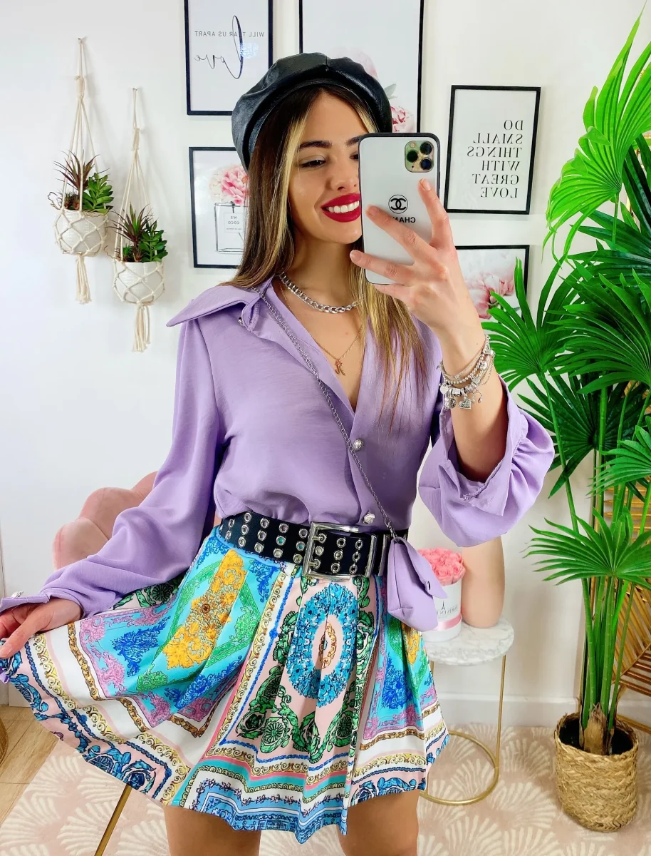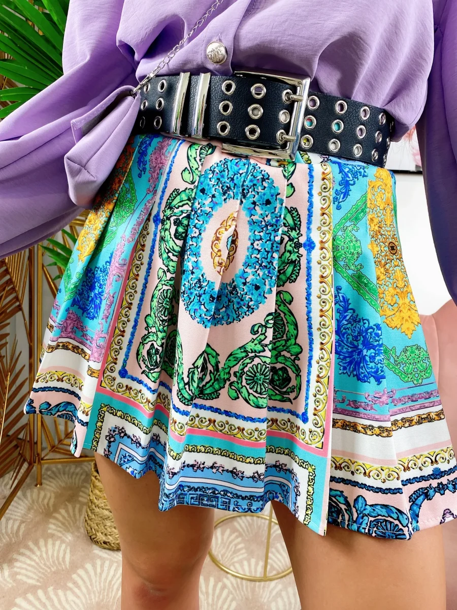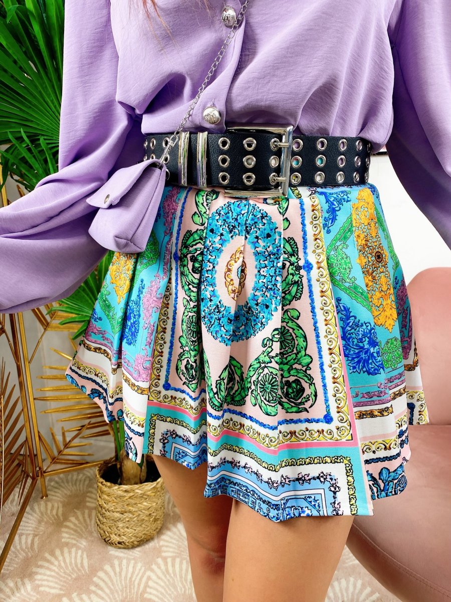 Short con stampa etnica sfumature celesti , elasticizzato e comodo.