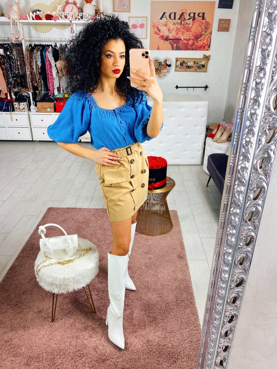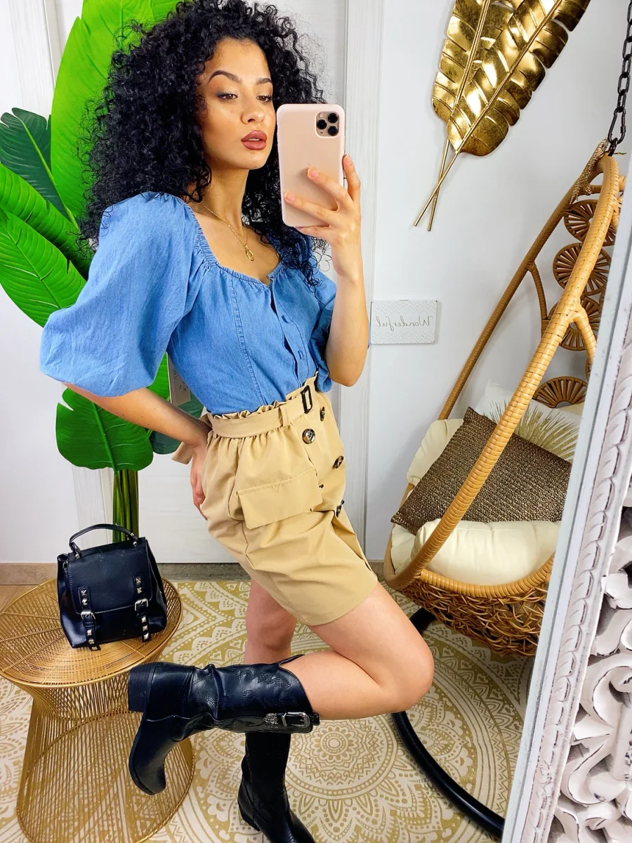 Gonna in cotone con bottoncini e cinturino. Vestibilità regolare. Qualità francese
