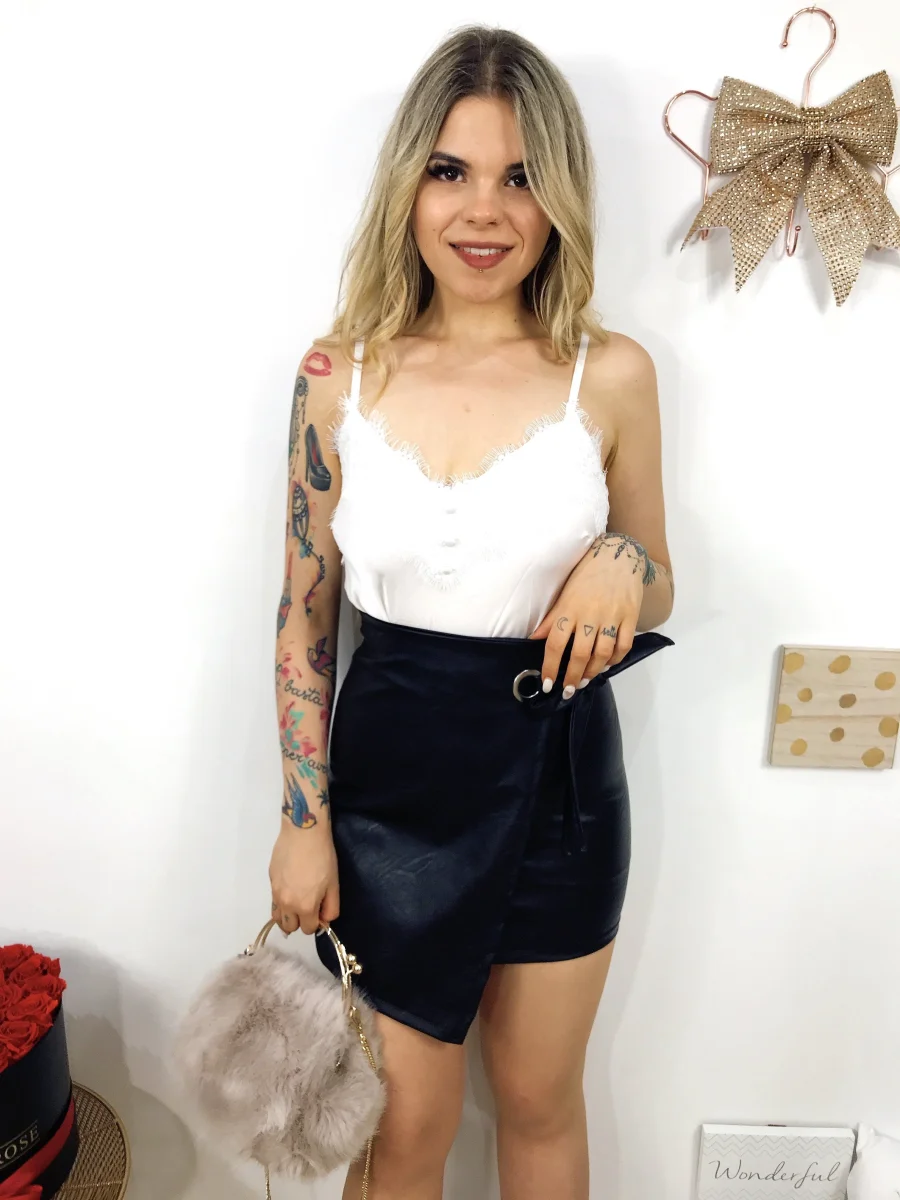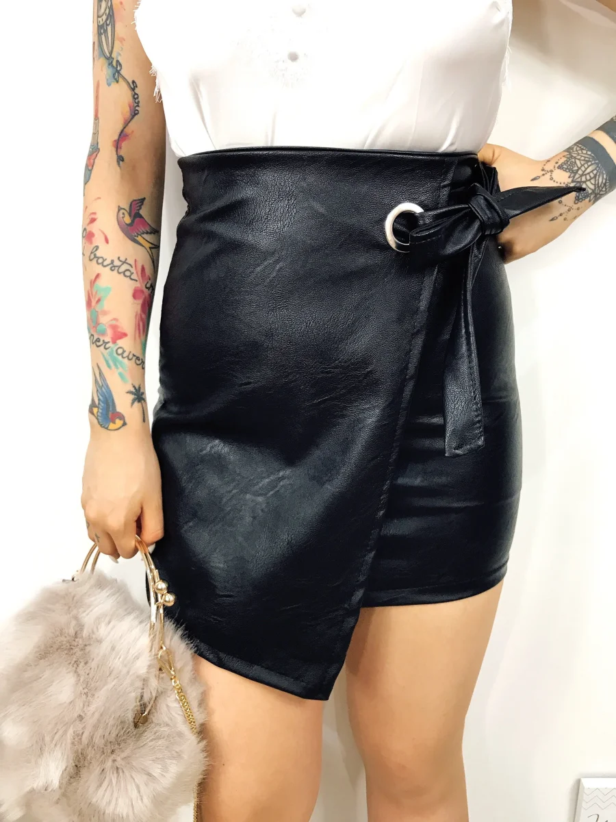 Gonna in ecopelle con zip dietro tessuto elasticizzato. Vestibilità piccola