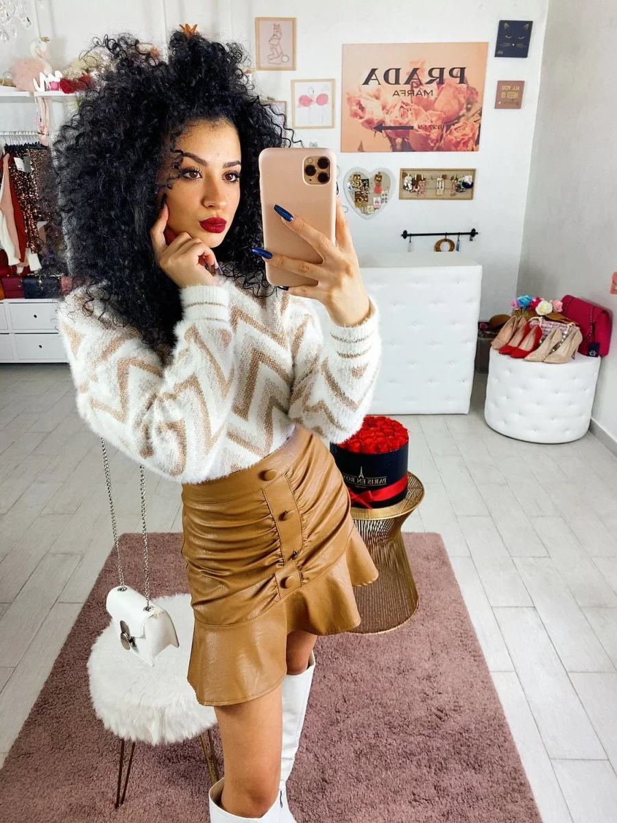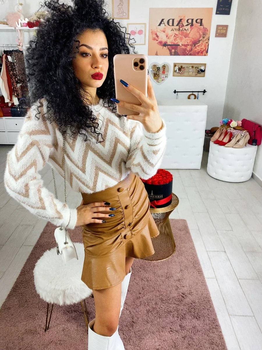 Gonna in ecopelle con bottoni e rouge. Chiusura con zip dietro.