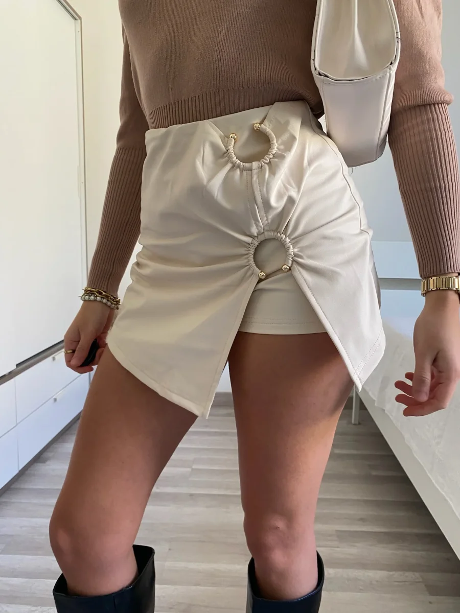 Recensisci per primo “Gonna in ecopelle con cerchi panna”