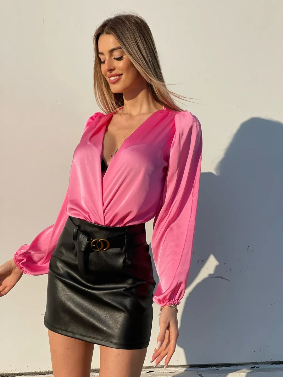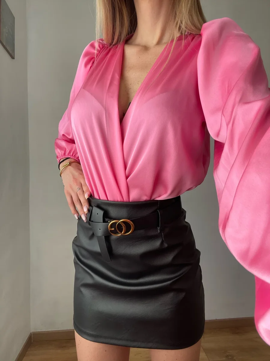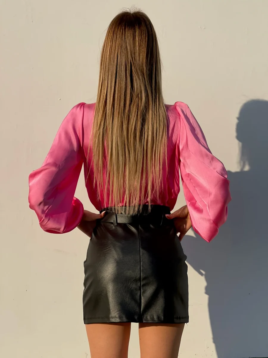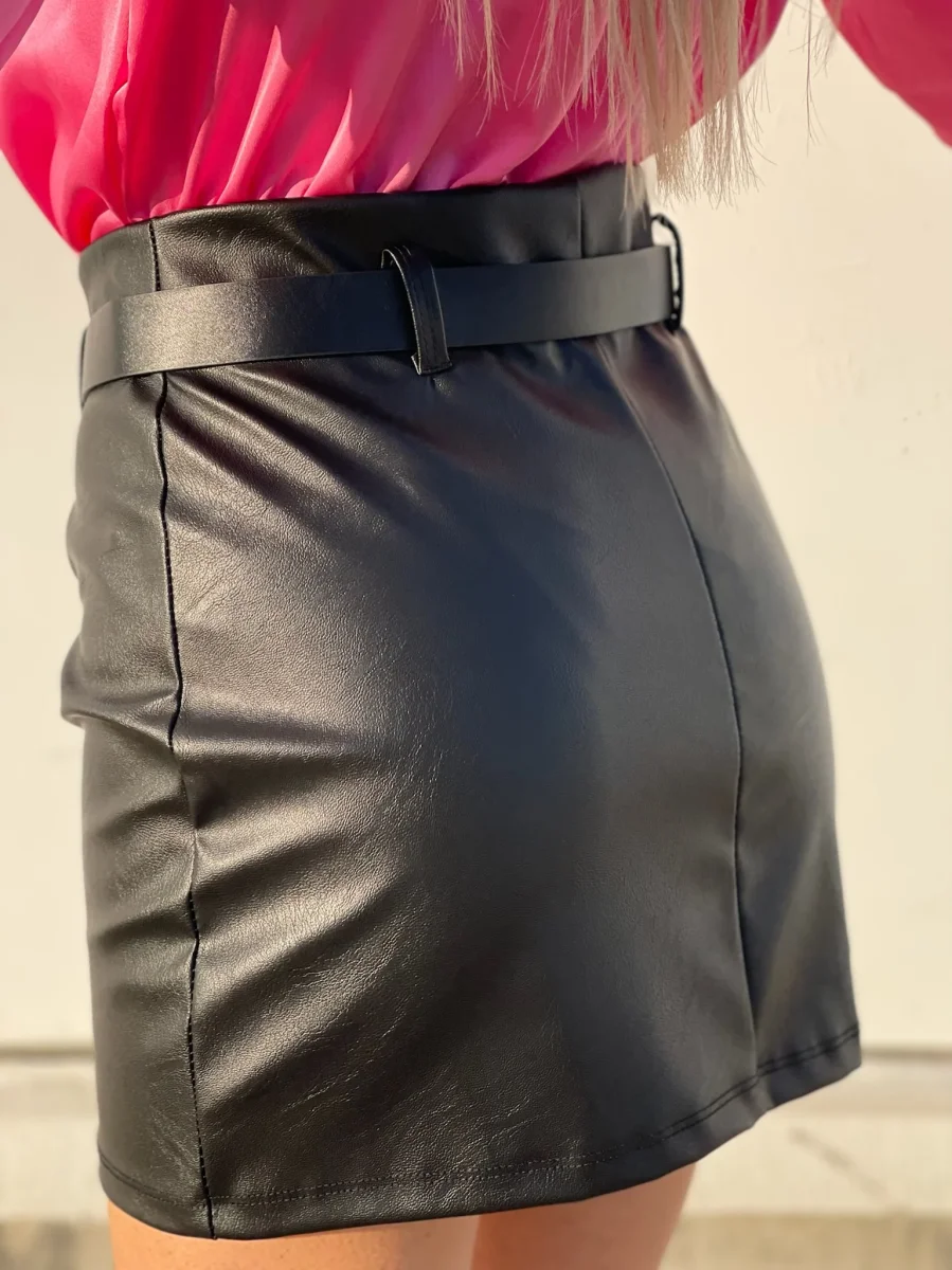 Gonna in ecopelle a tinta unita con chiusura con zip. Cintura inclusa nel capo