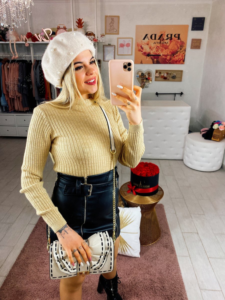 Gonna in coppelle con doppia zip E chiusura con ganci. Vestibilità ridotta