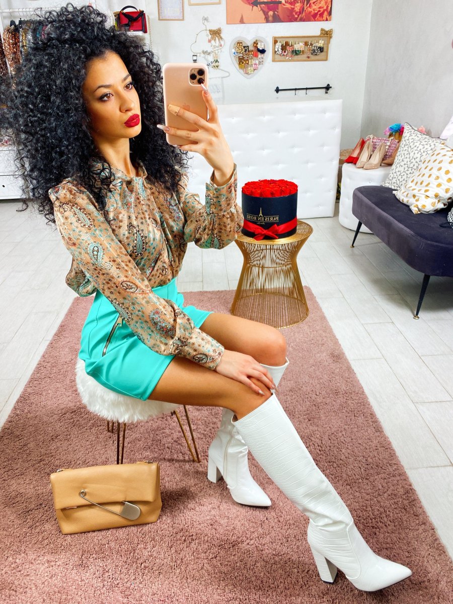 Gonna in ecopelle con coppie zip. Tessuto leggermente elasticizzato