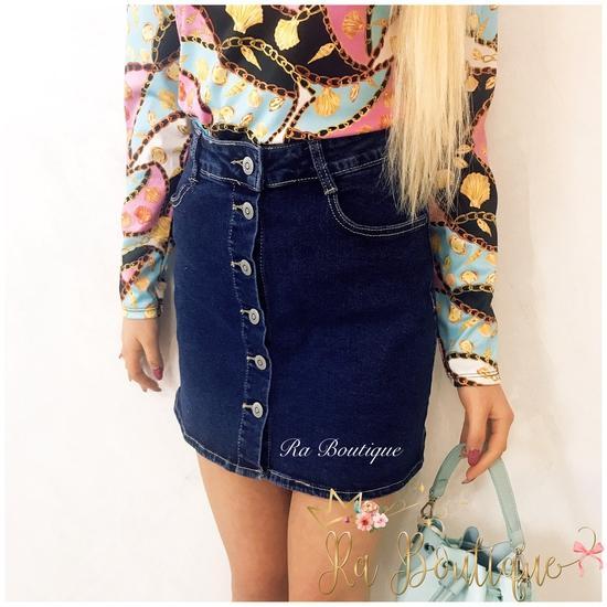 Gonna in tessuto elasticizzato con chiusura con bottoni.