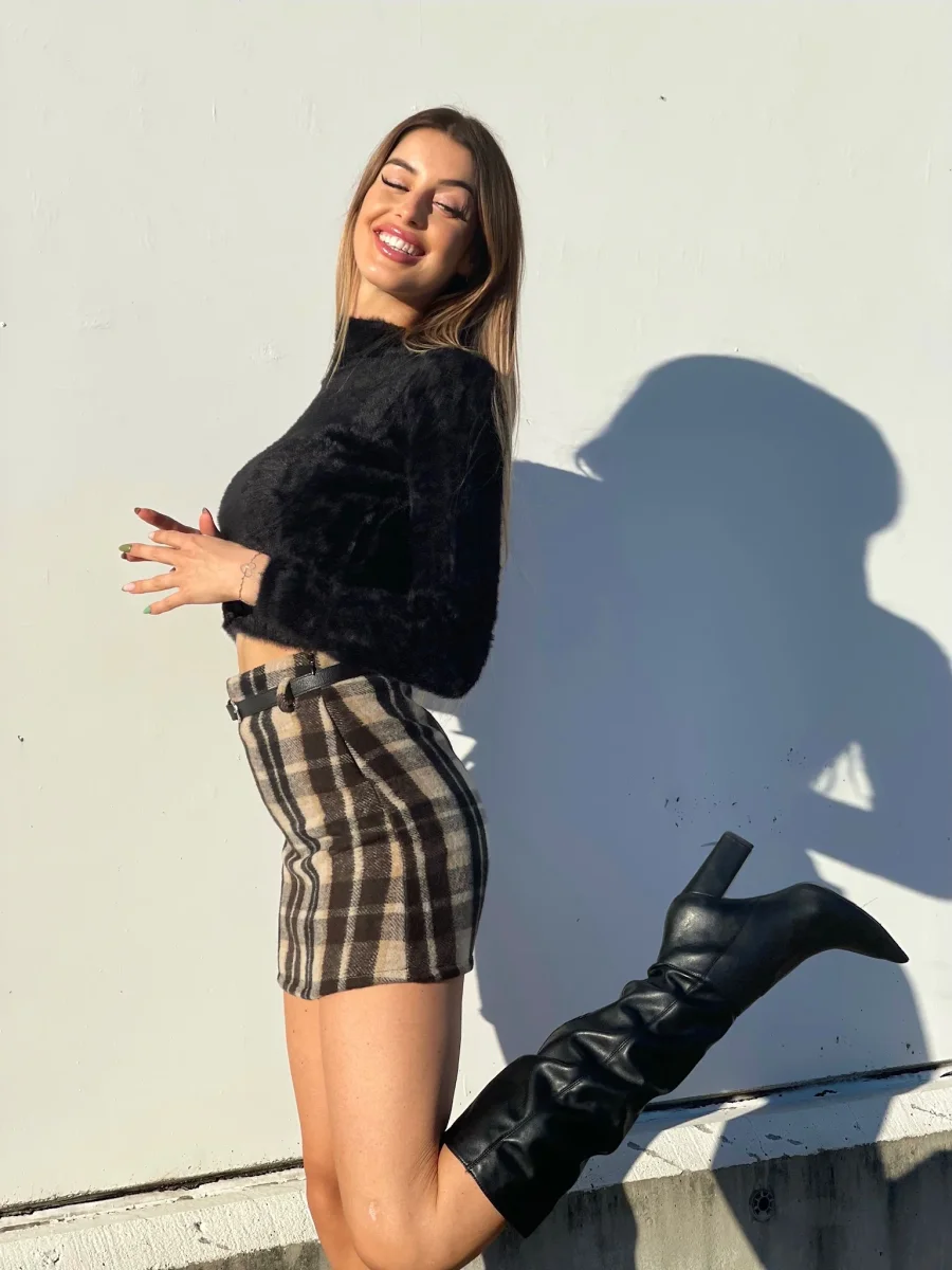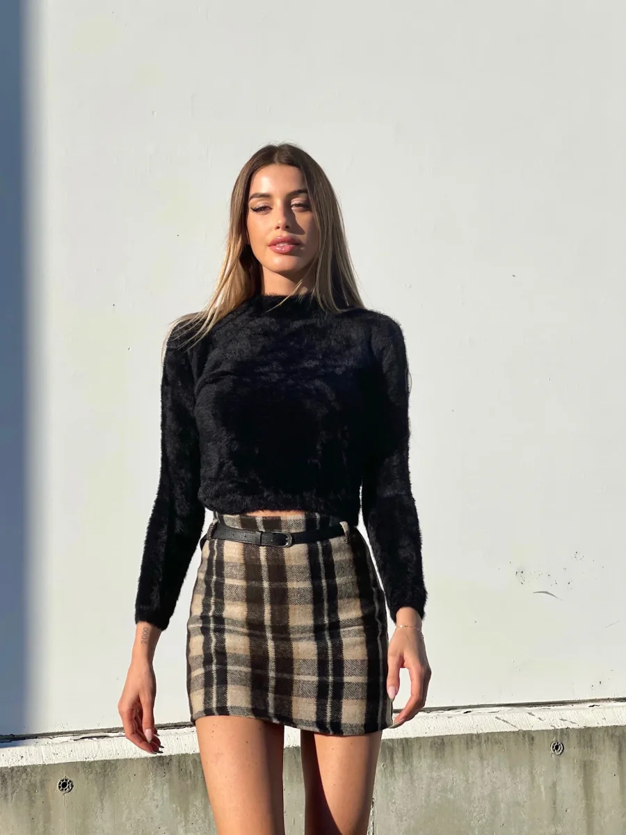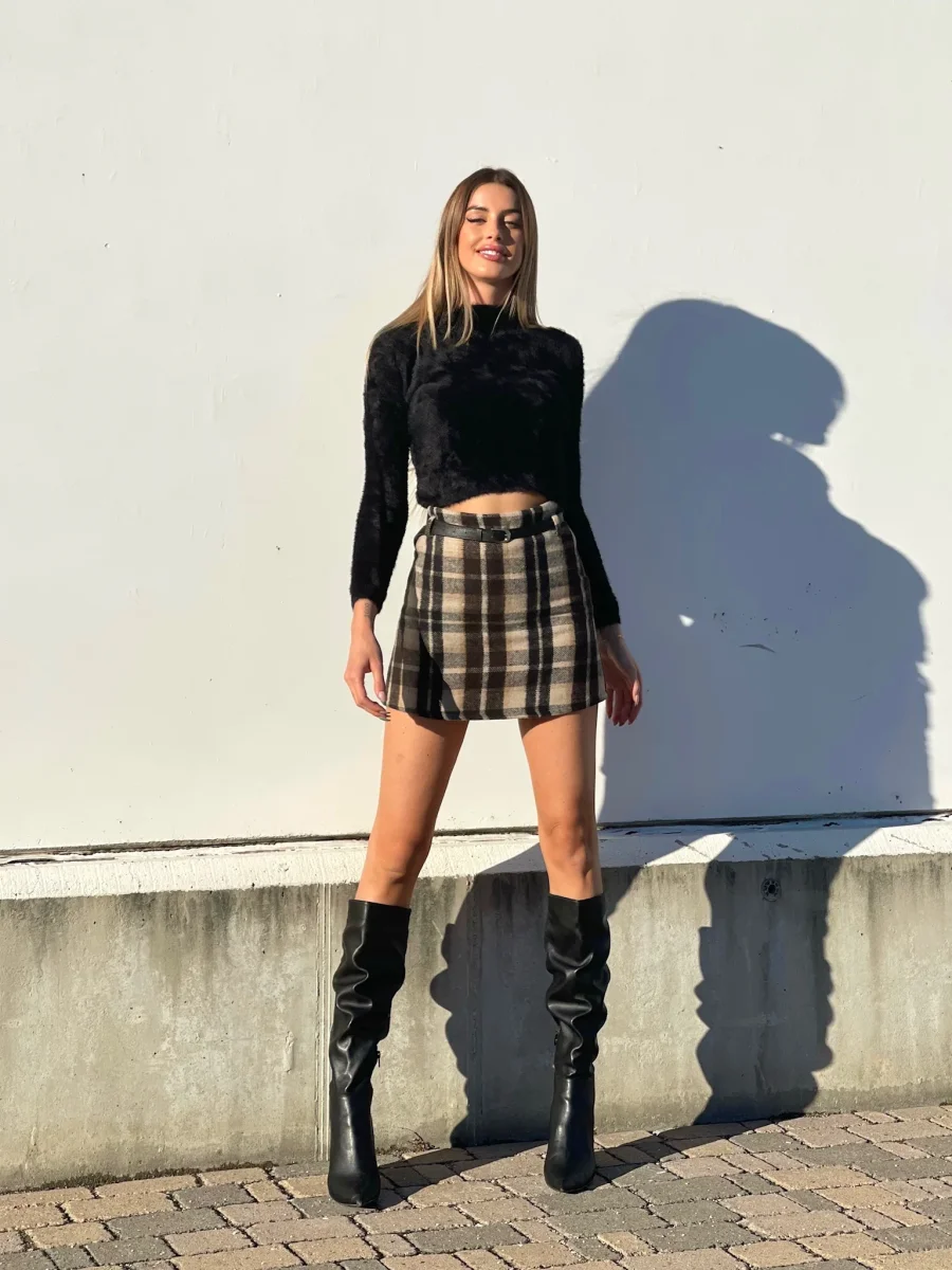 Gonna in tweed non elasticizzata con cintura nera inclusa. Varie fantasie disponibili