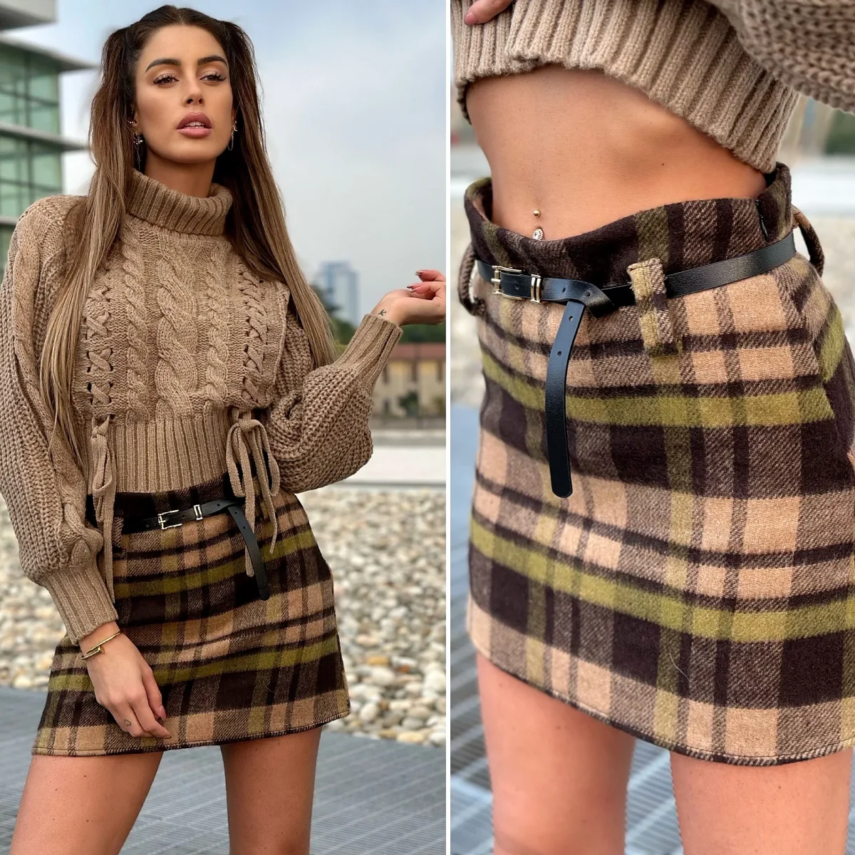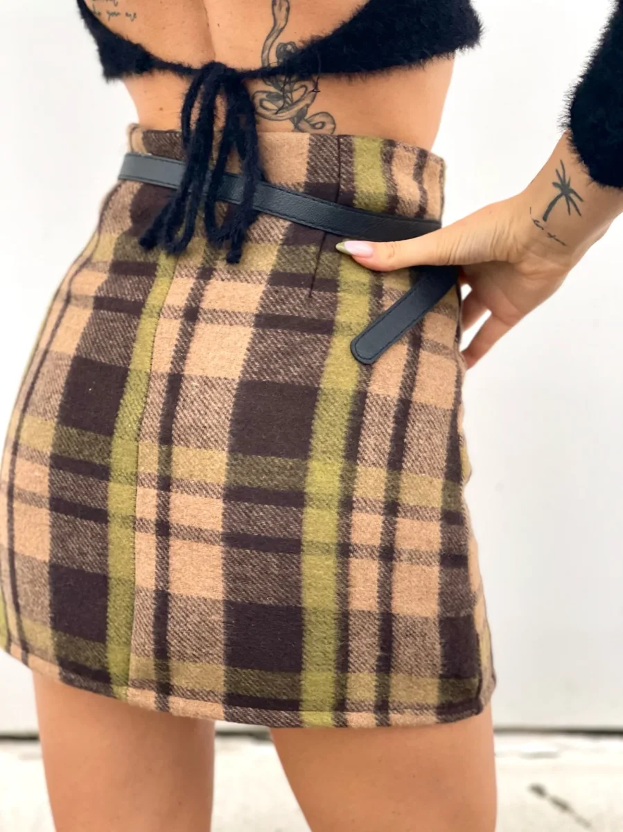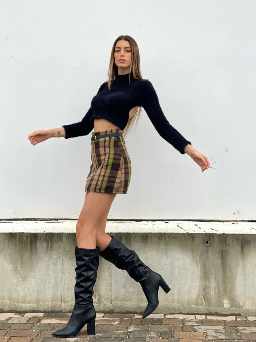 Gonna in tweed non elasticizzata con cintura nera inclusa. Varie fantasie disponibili