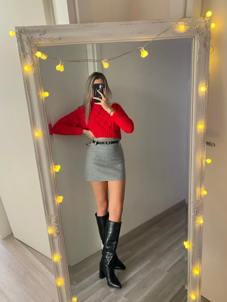 Gonna in tweed foderata non elasticizzata con cintura inclusa. Vestibilità ridotta