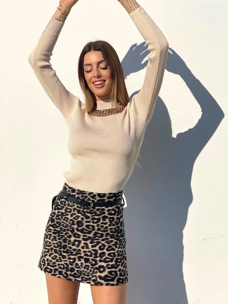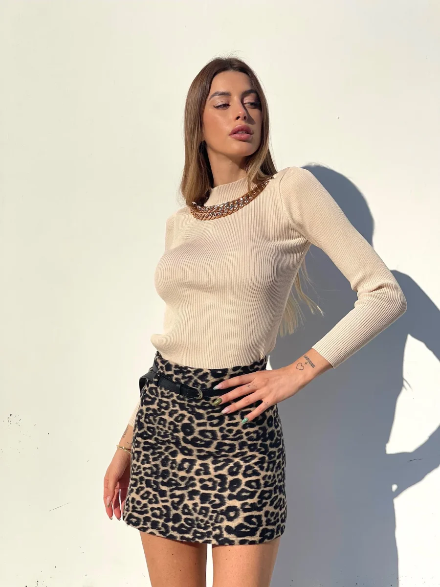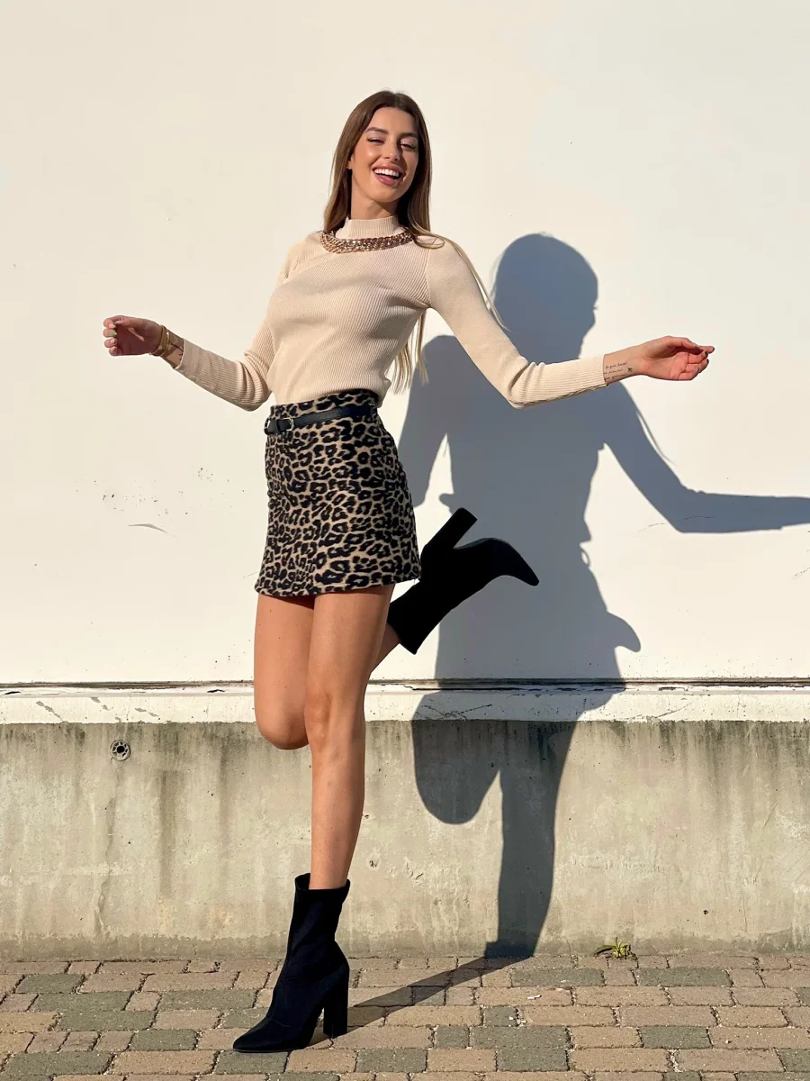 Gonna in tweed non elasticizzata con cintura nera inclusa. Varie fantasie disponibili