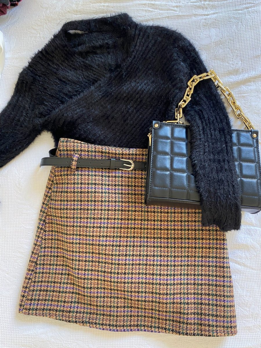 Gonna in tweed con fodera interna e cintura inclusa. Vestibilità piccola