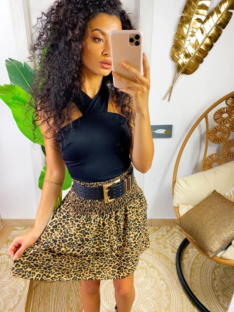 Gonna maculata con elastico. La gonna è dotata di un elastico in vita molto largo così da renderla adattabile a tutte le taglie.