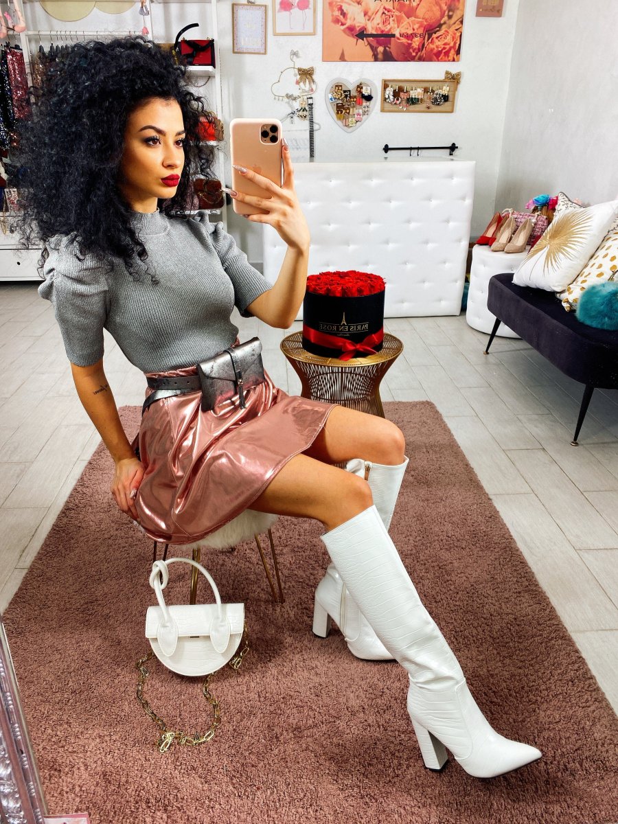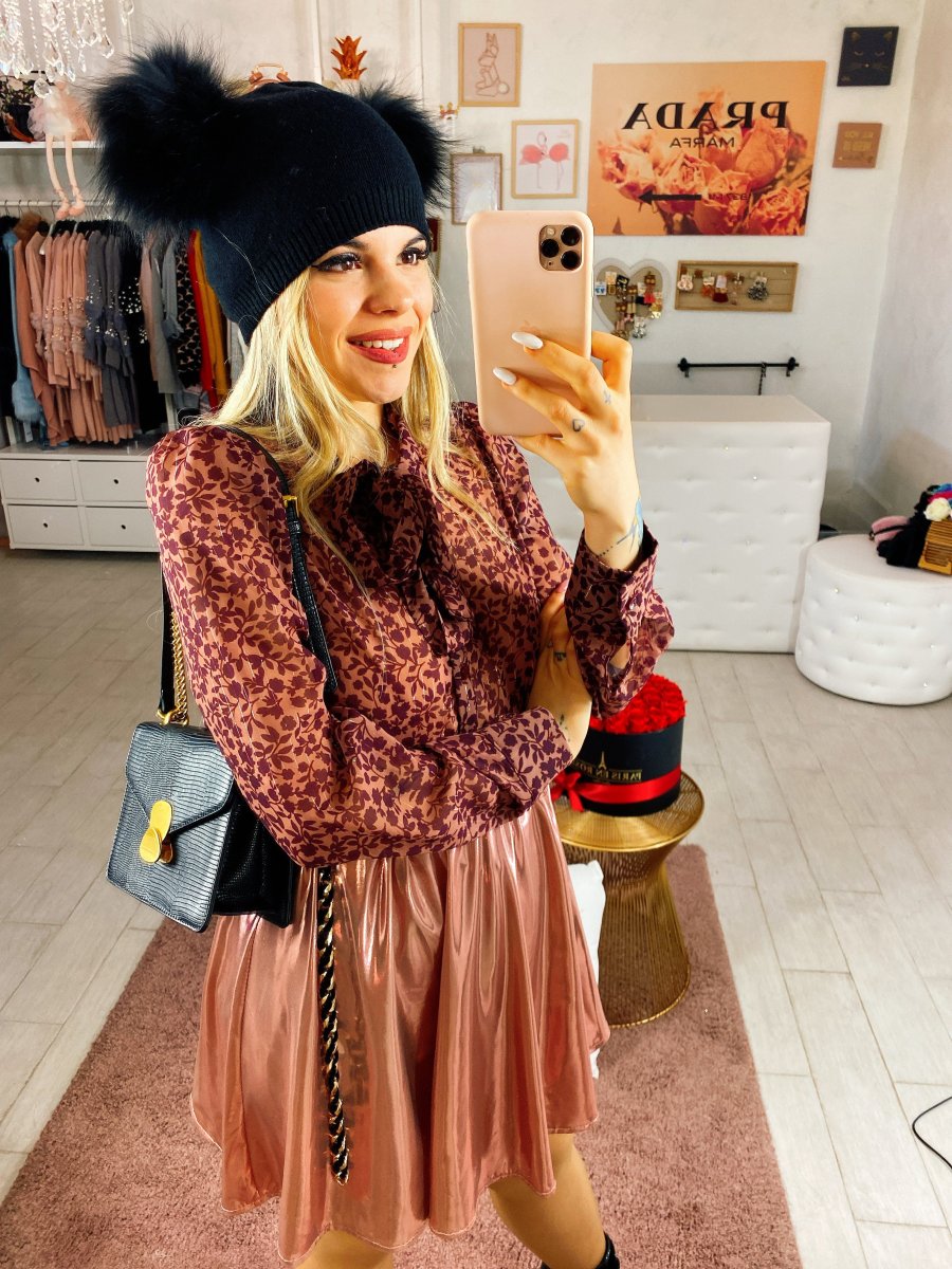 Mini gonna a ruota in tessuto simil metal,elastico in vita.