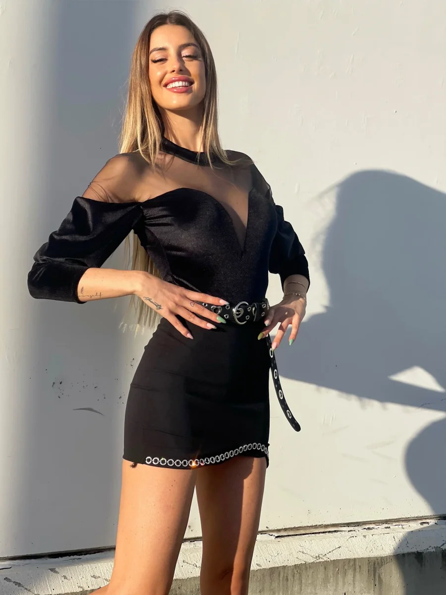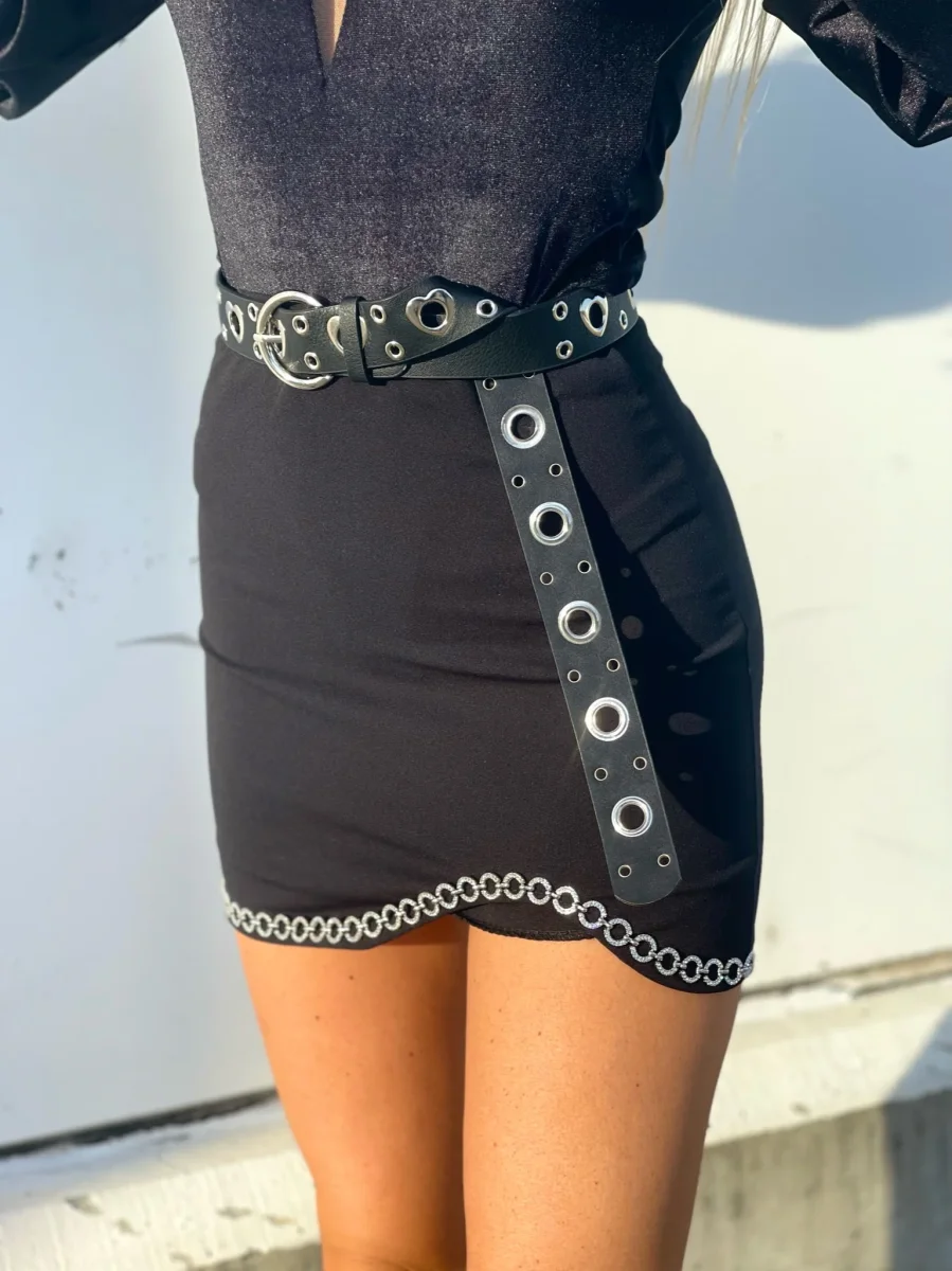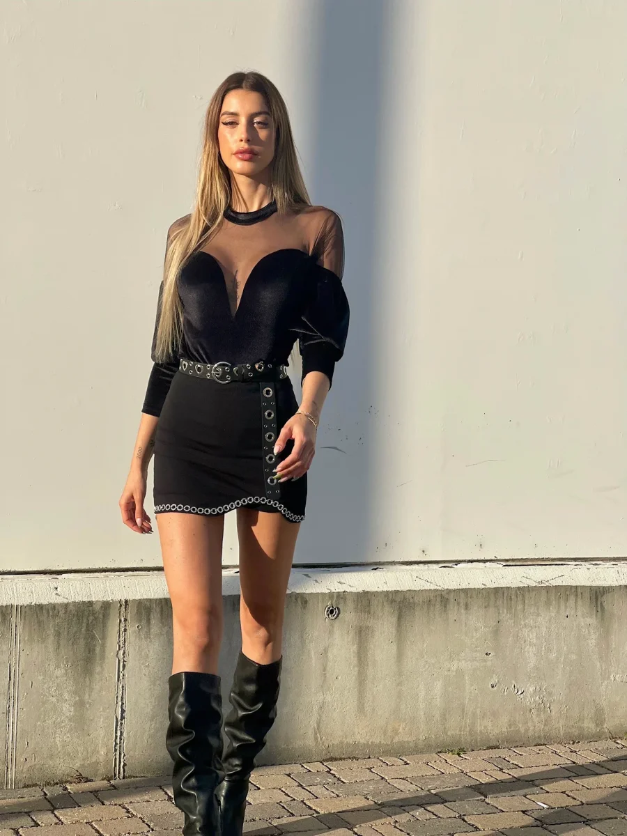 Gonna nera con dettaglio argento Molto elasticizzata in vita.