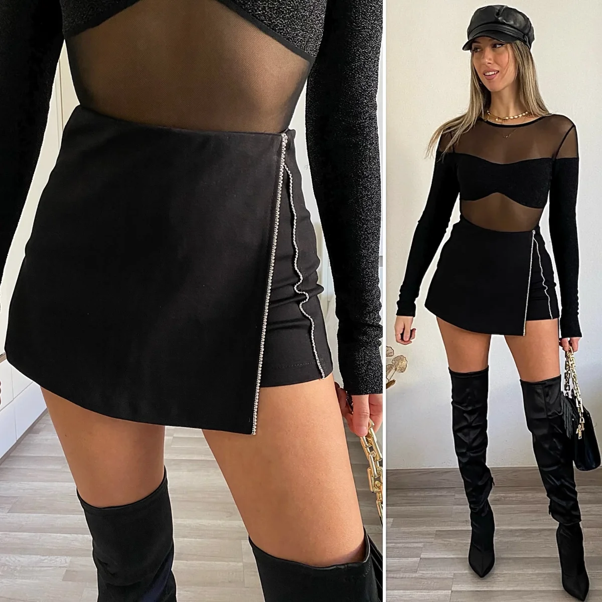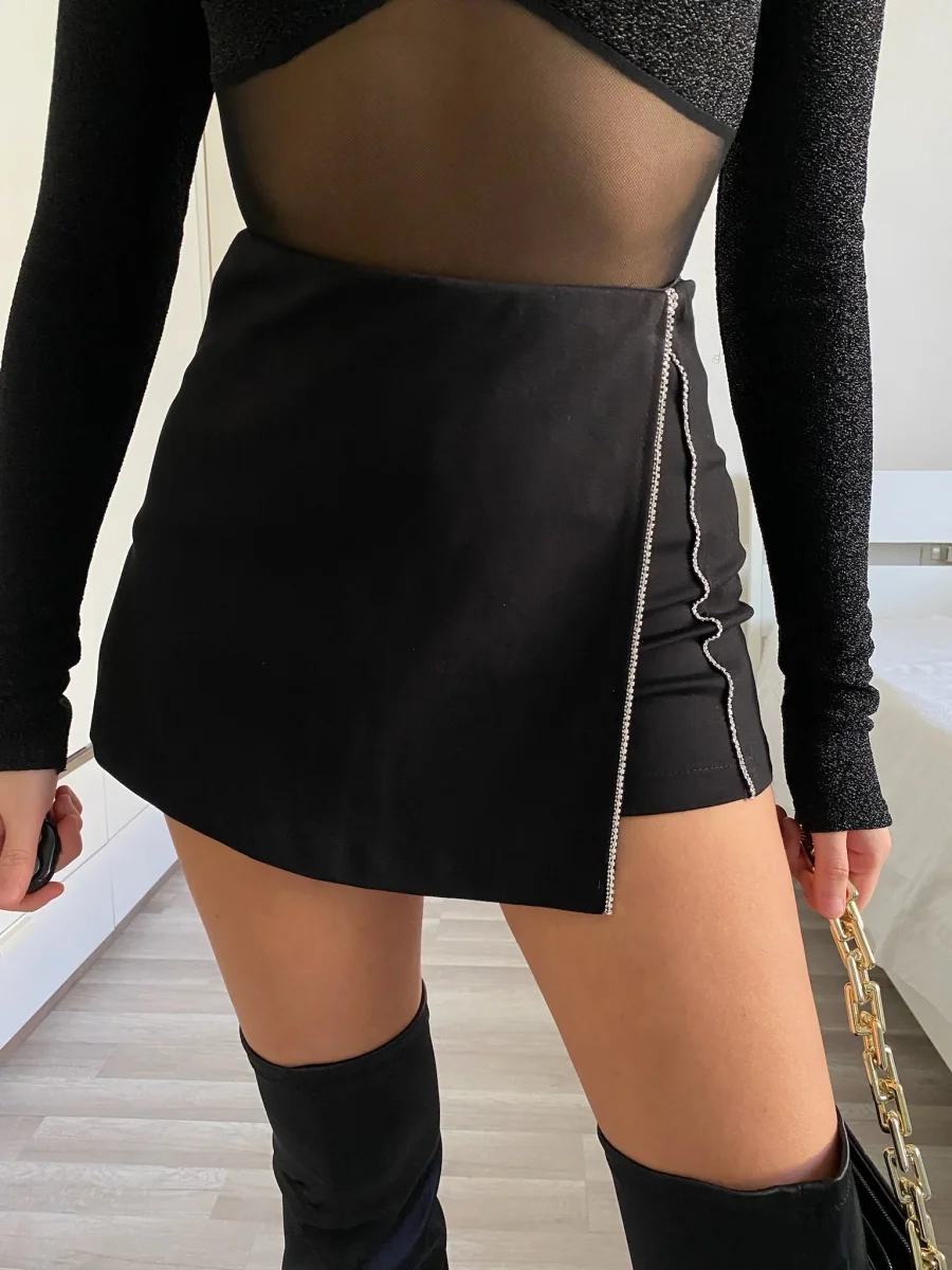 Gonna pantalone con elastico in vita con dettaglio a portafoglio e strass