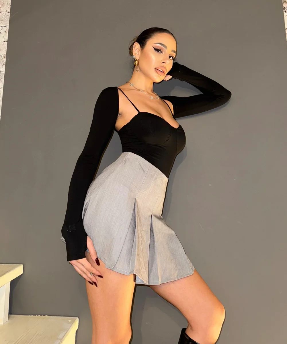 Gonna pantaloncino grigia con pieghe, leggermente elasticizzata