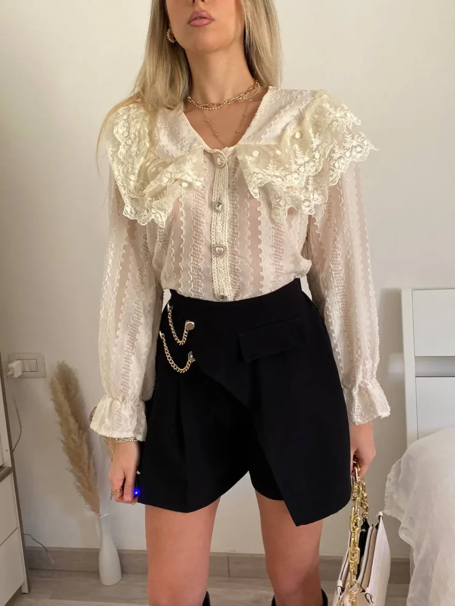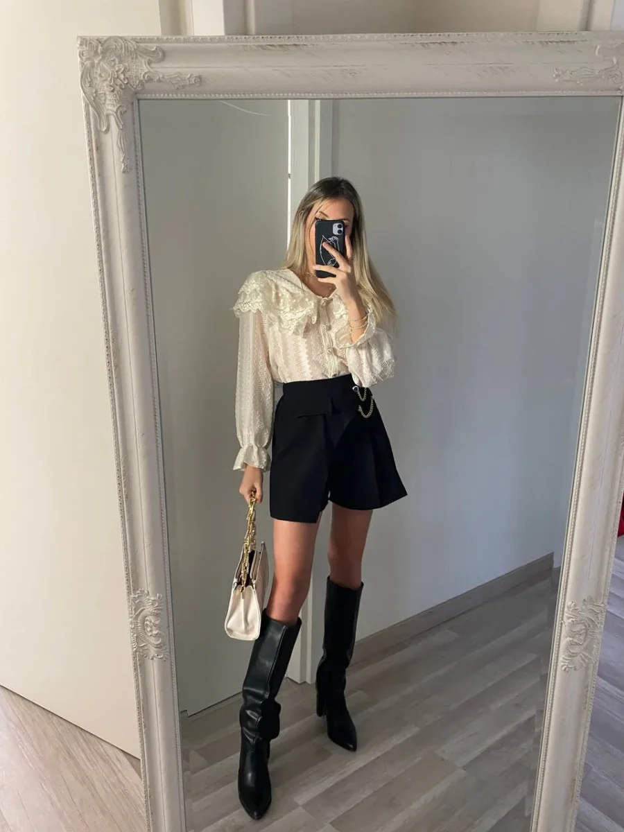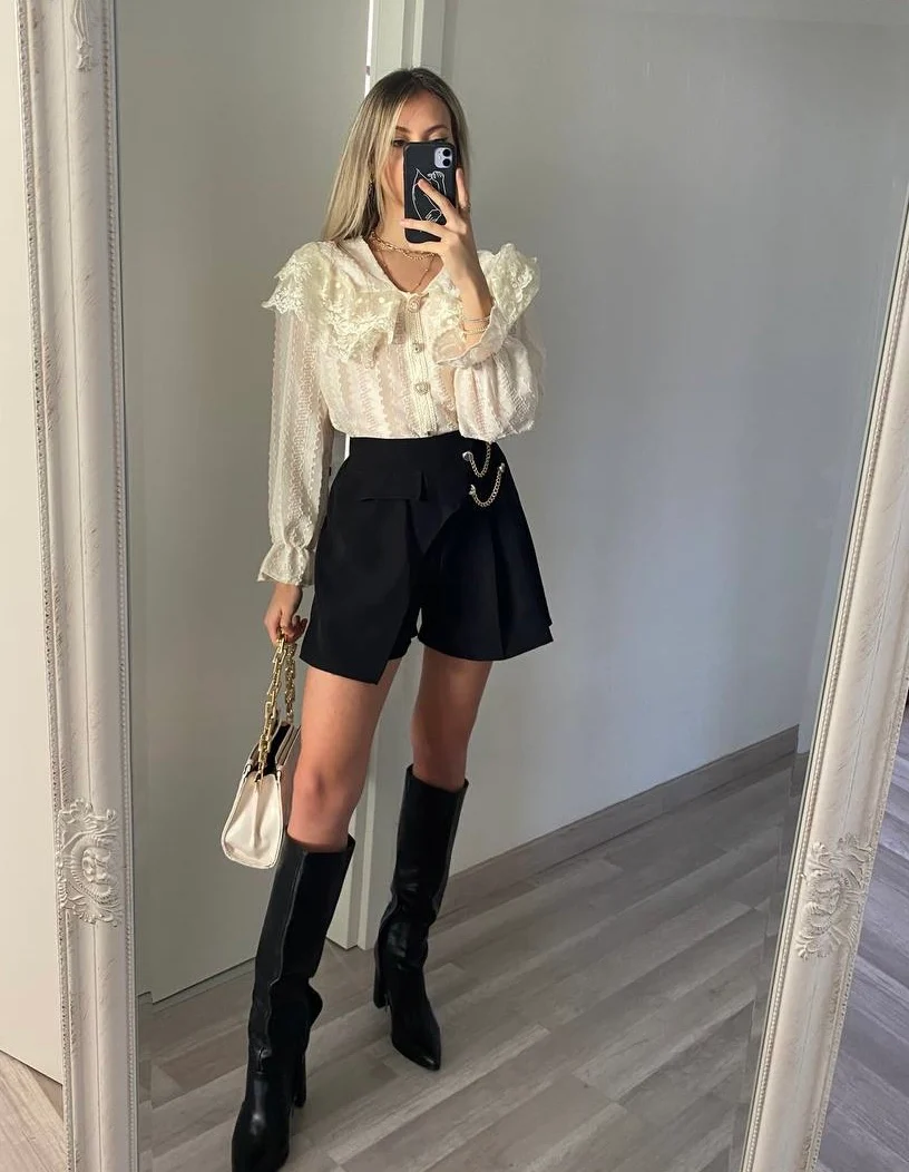 Gonna pantalone con elastico in vita e catena oro in dettaglio