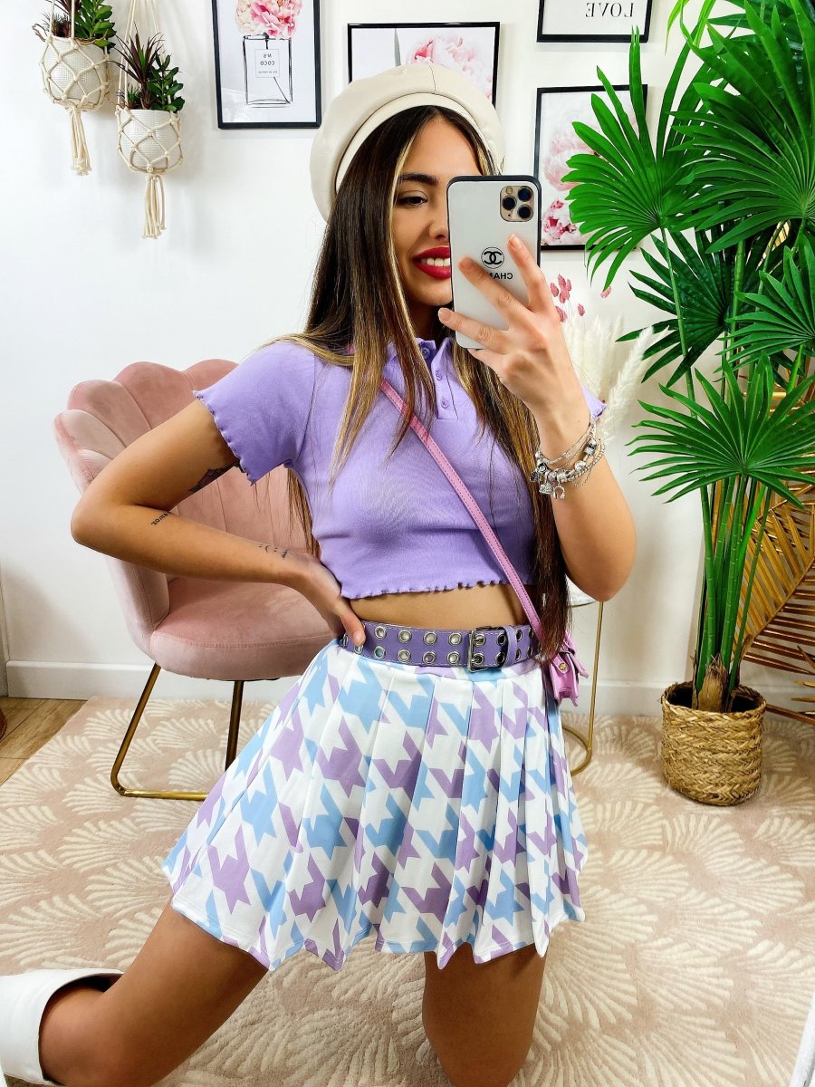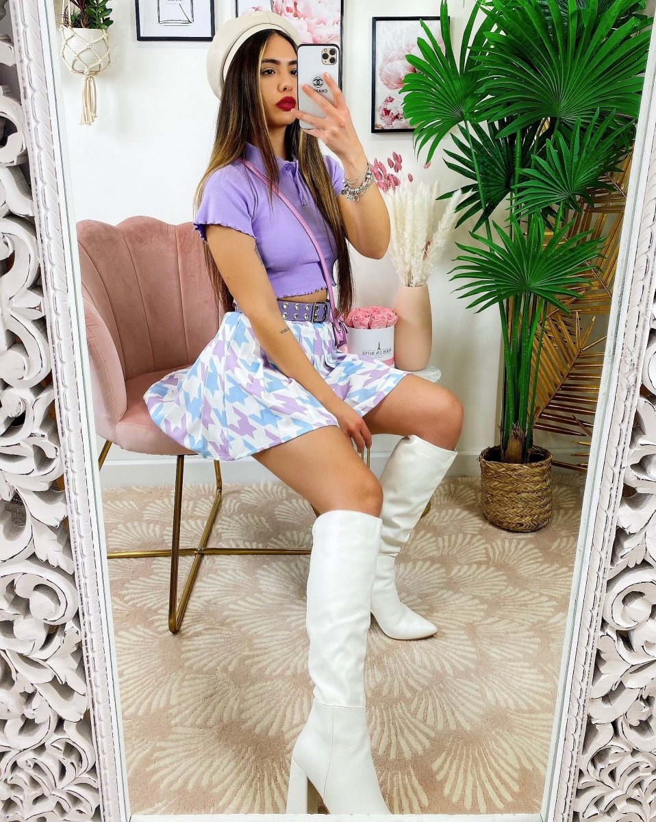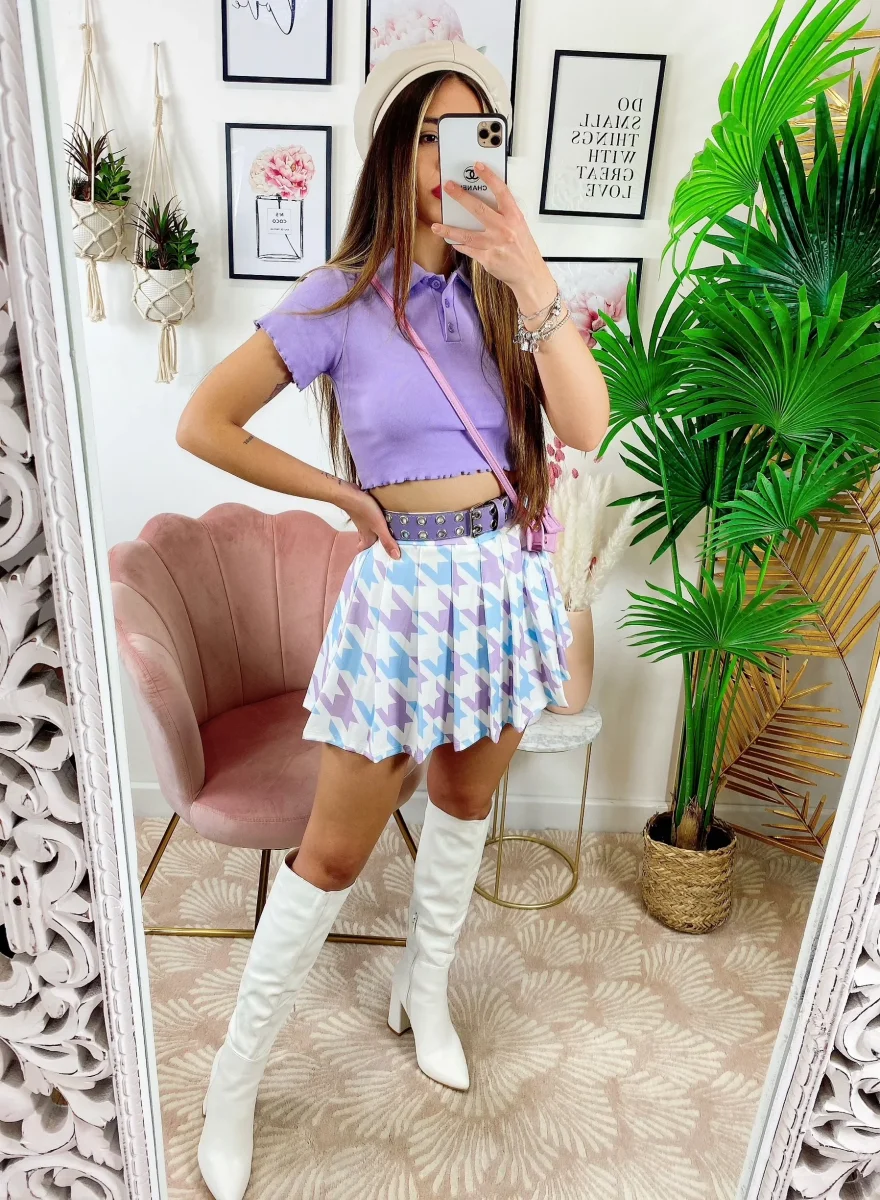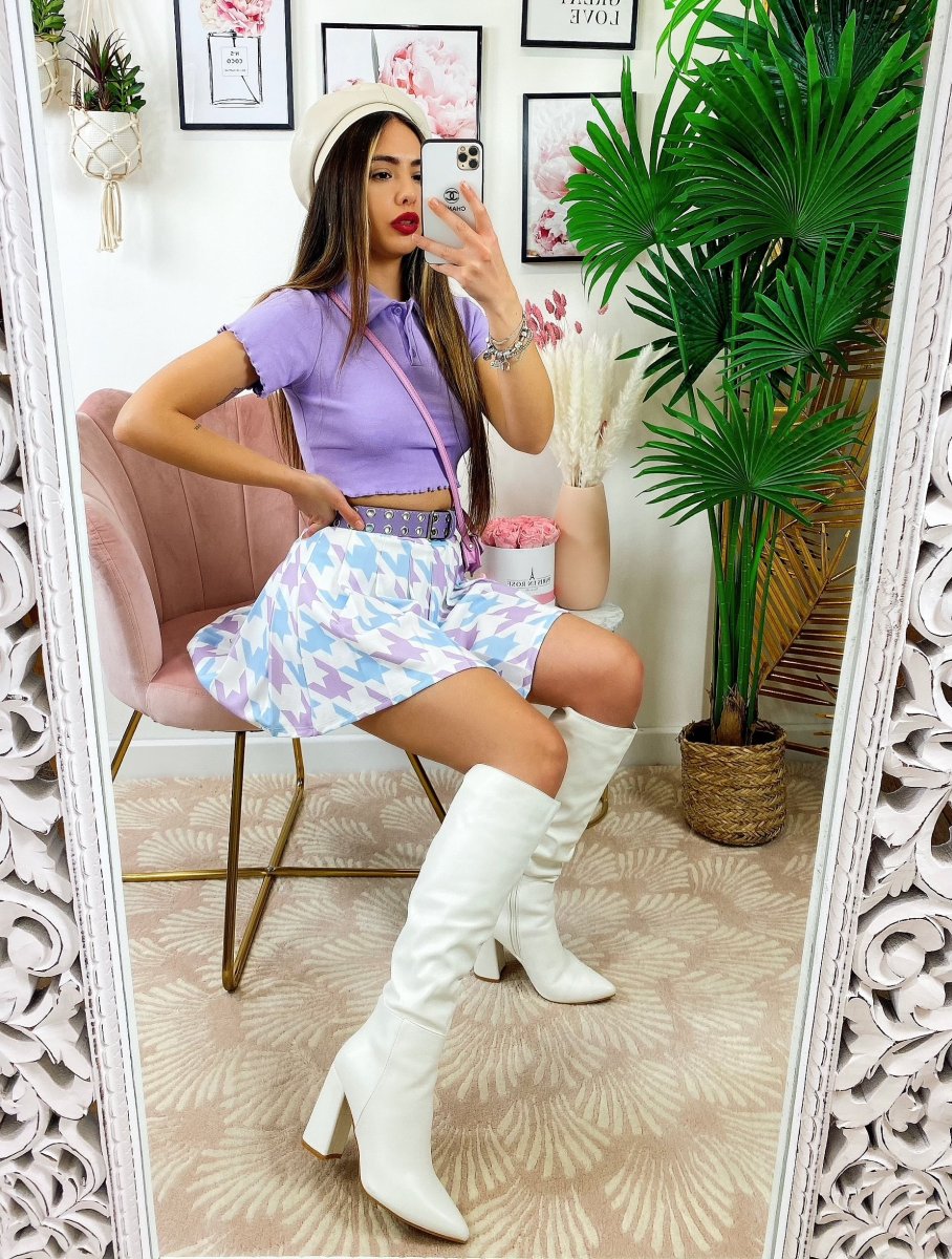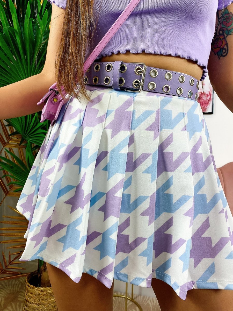 gonna Pied de poule lilla celeste , elasticizzato.