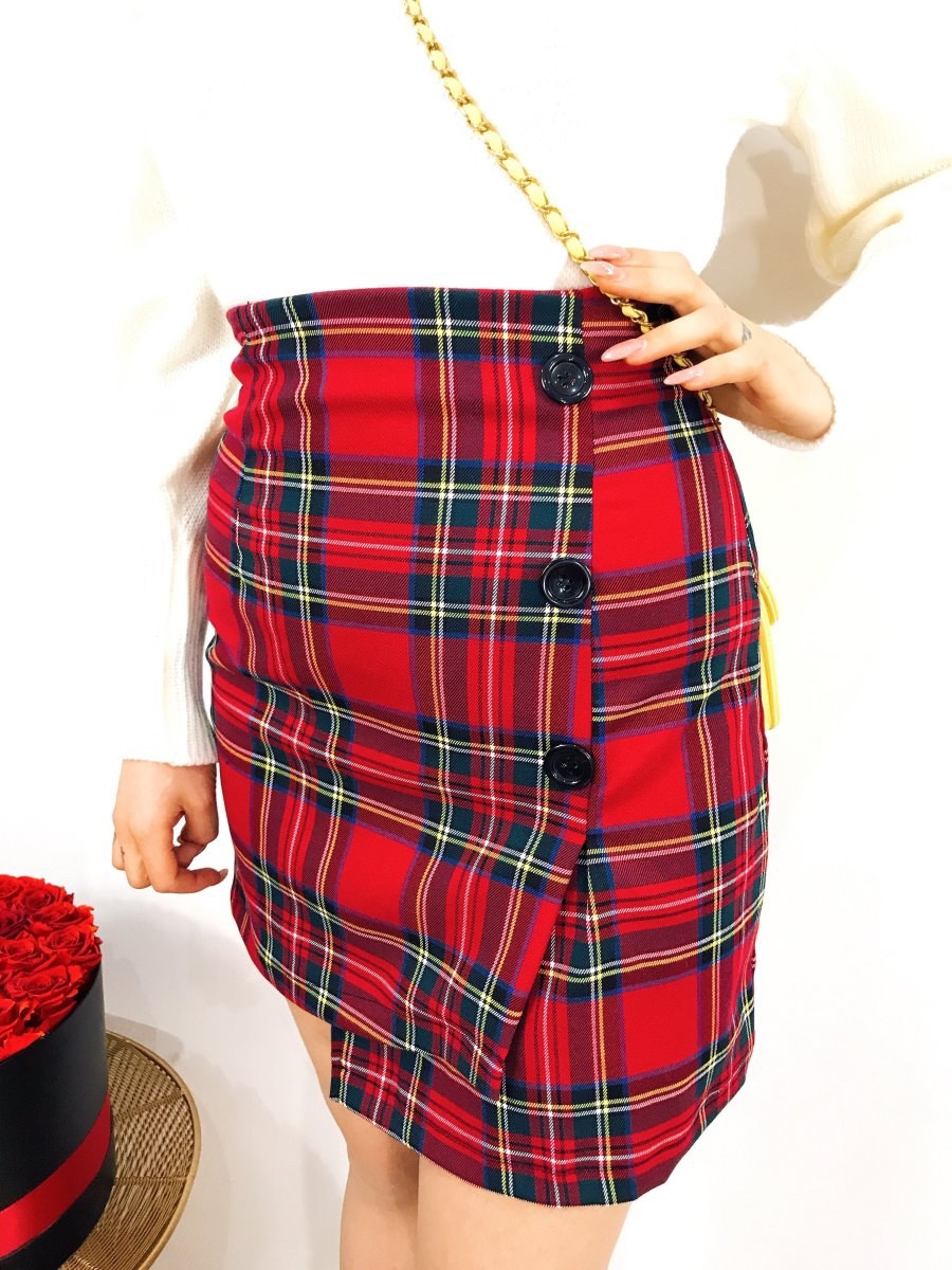 Gonna in tessuto scozzese con in dettaglio bottoni neri. Vestibilità piccola