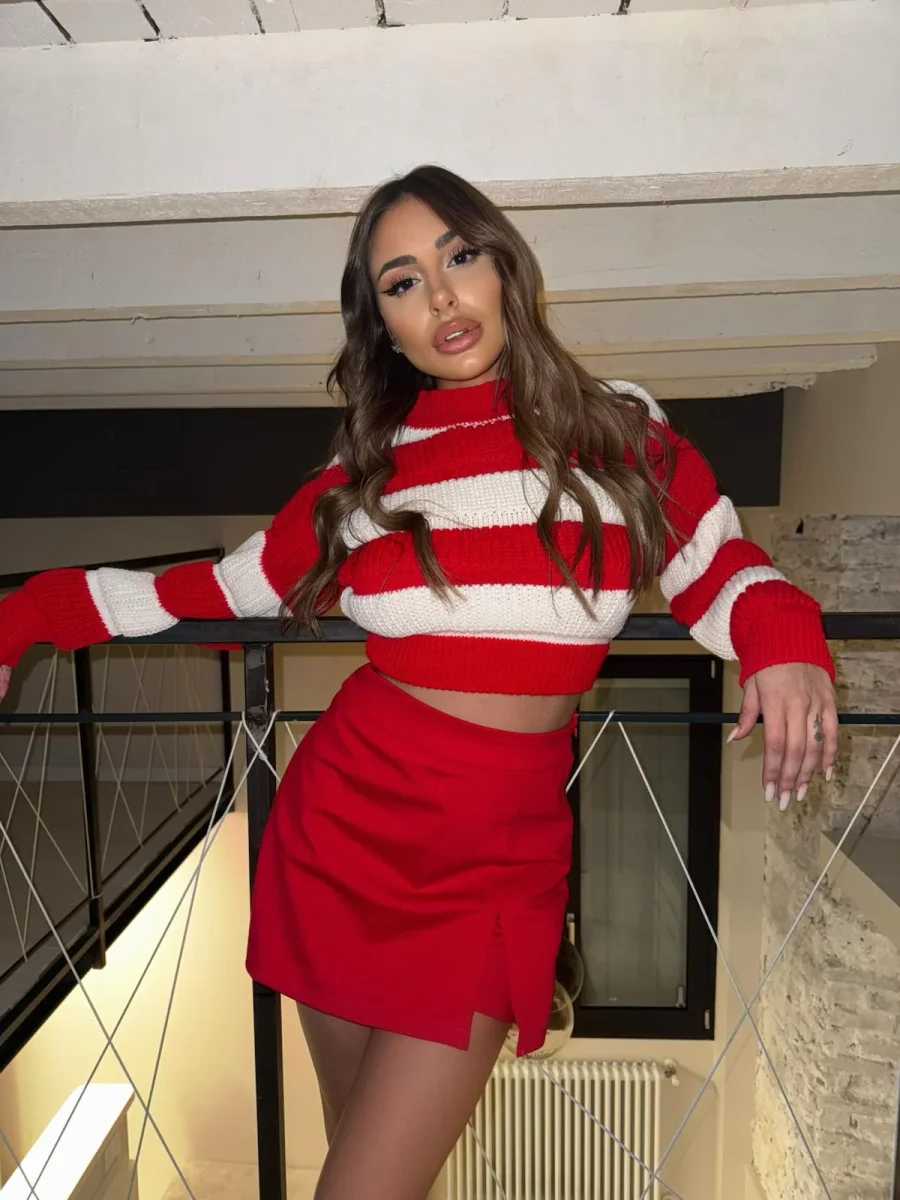 Gonna short con spacchetto rosso