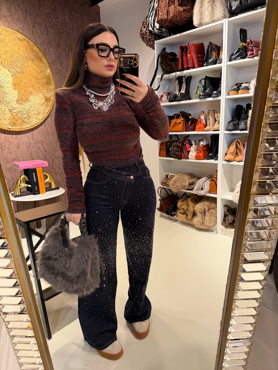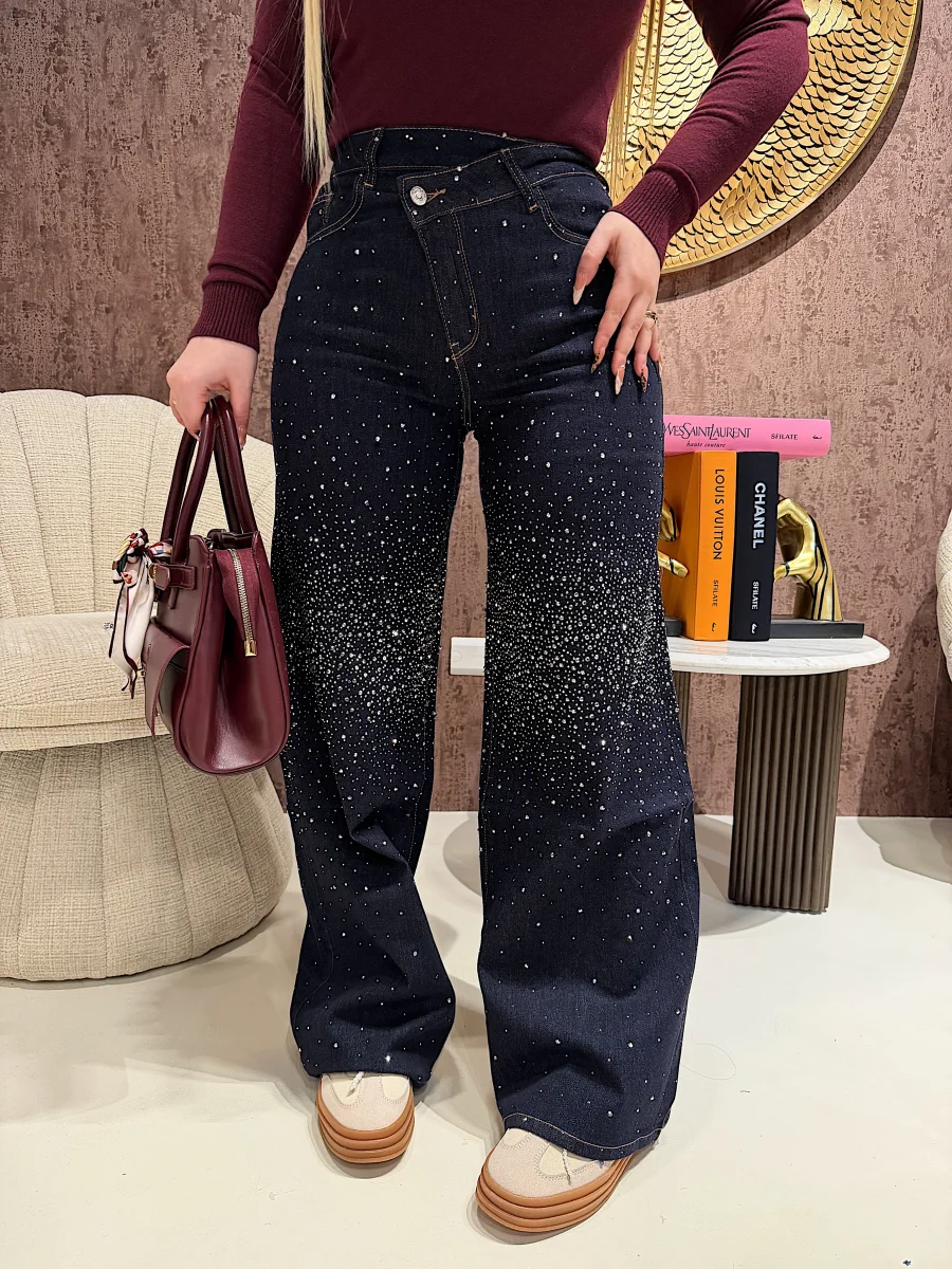 Jeans a vita alta con chiusura asimmetrica, il dettaglio di tendenza che slancia la figura e dona un effetto snellente immediato 🤎
