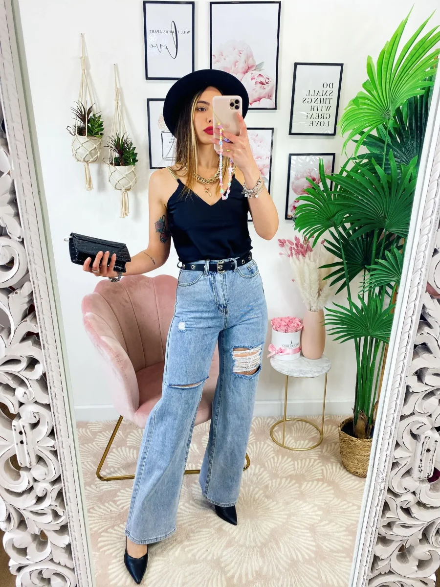 Jeans boyfriend zampa larga Con spacchi.