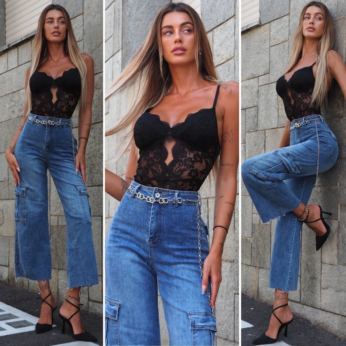 Jeans cargo con tasconi e pantaloni a palazzo. In foto taglia XS. Poco elasticizzato