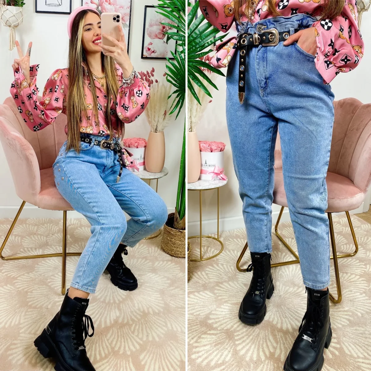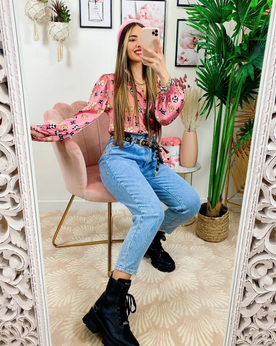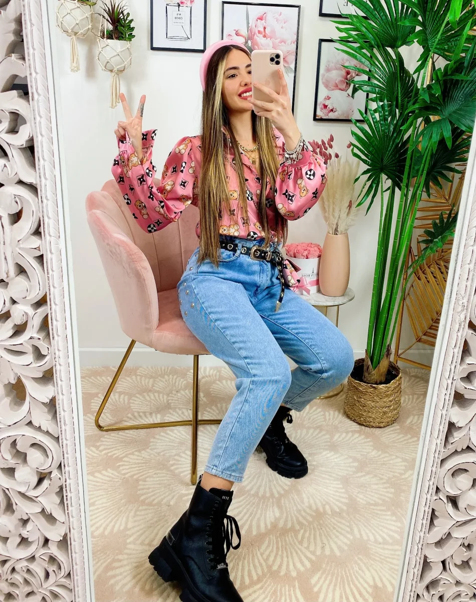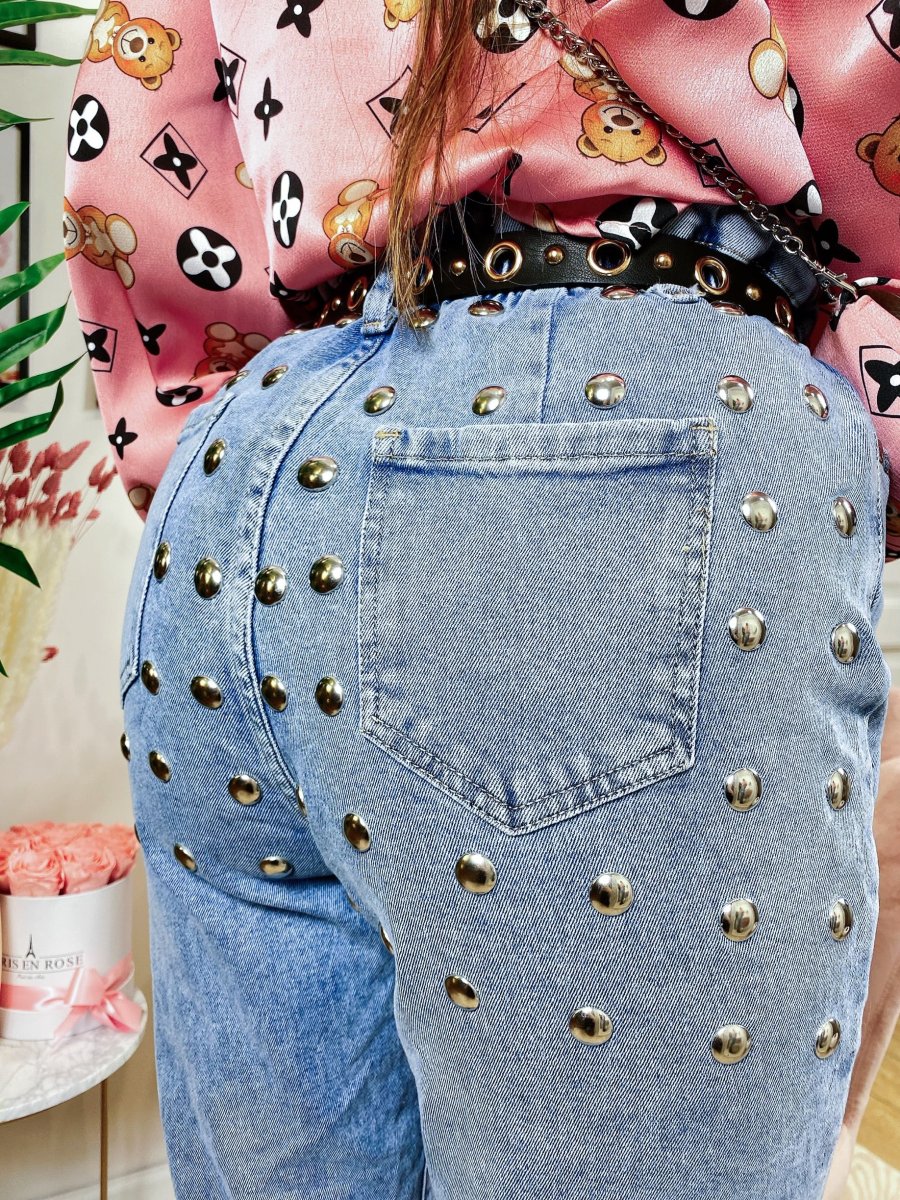 Jeans con borchie posteriori grandi , comodo da tutti i giorni.