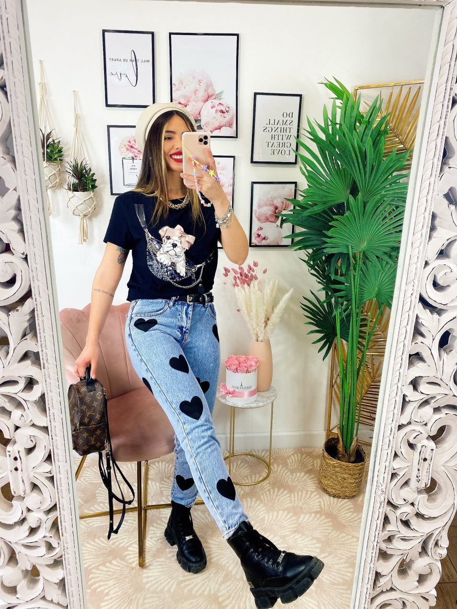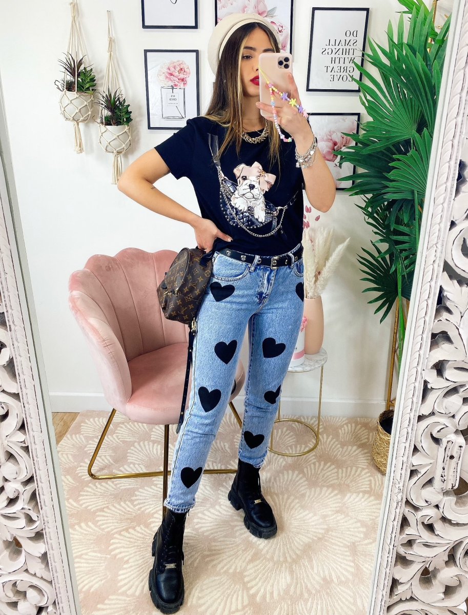 jeans con cuori grandi, Ottimo tessuto e vestibilità.
