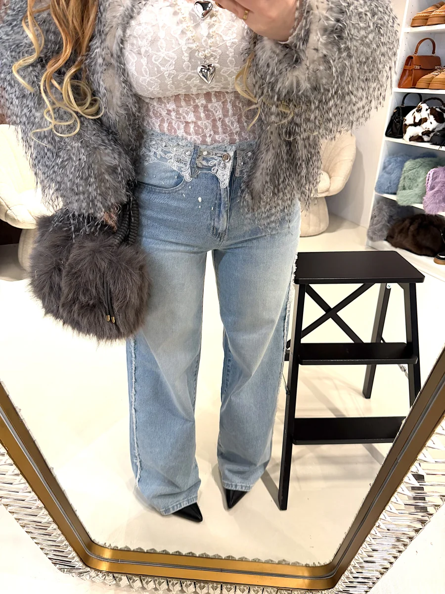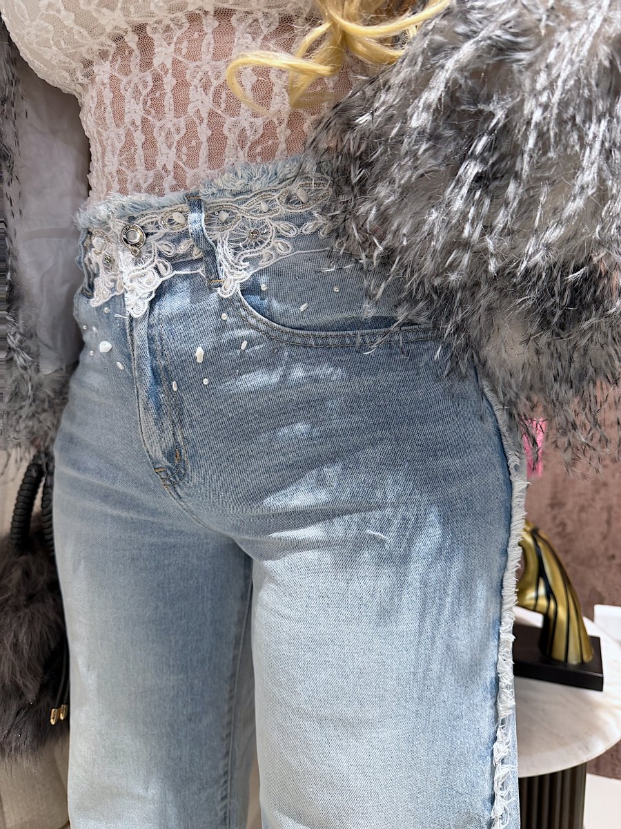 Jeans con pizzo e perle