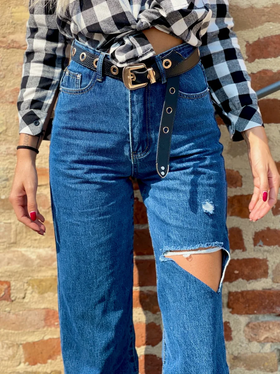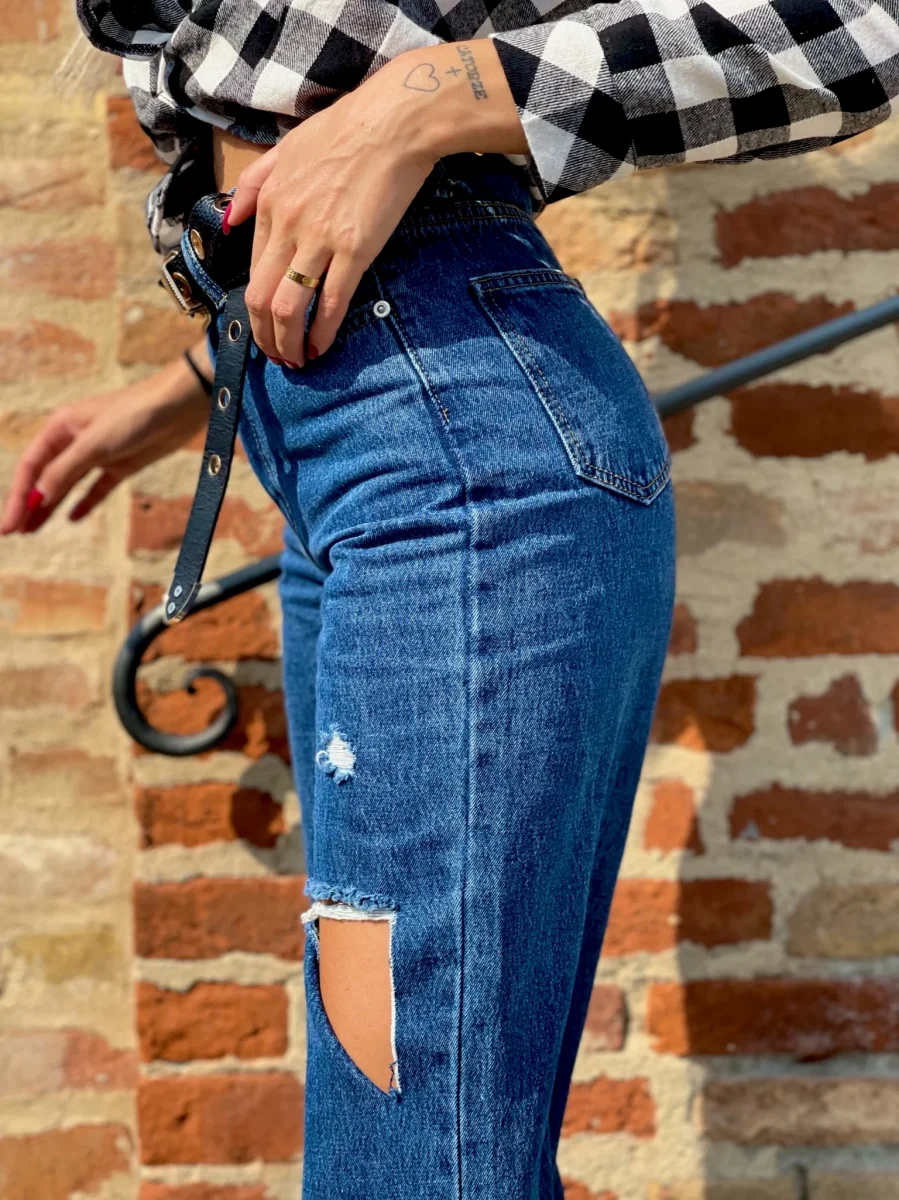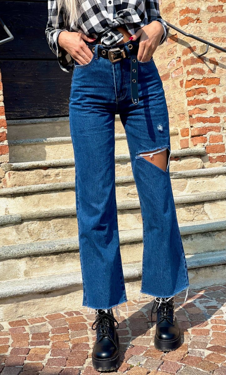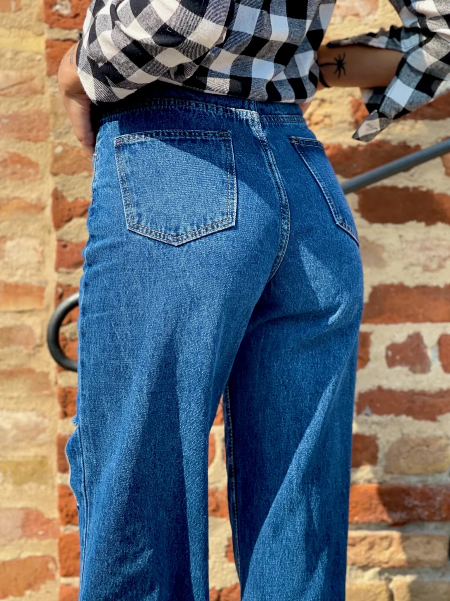 Jeans dalla vestibilità regolare. Gamba ampia morbida e spacco. Colorazione media