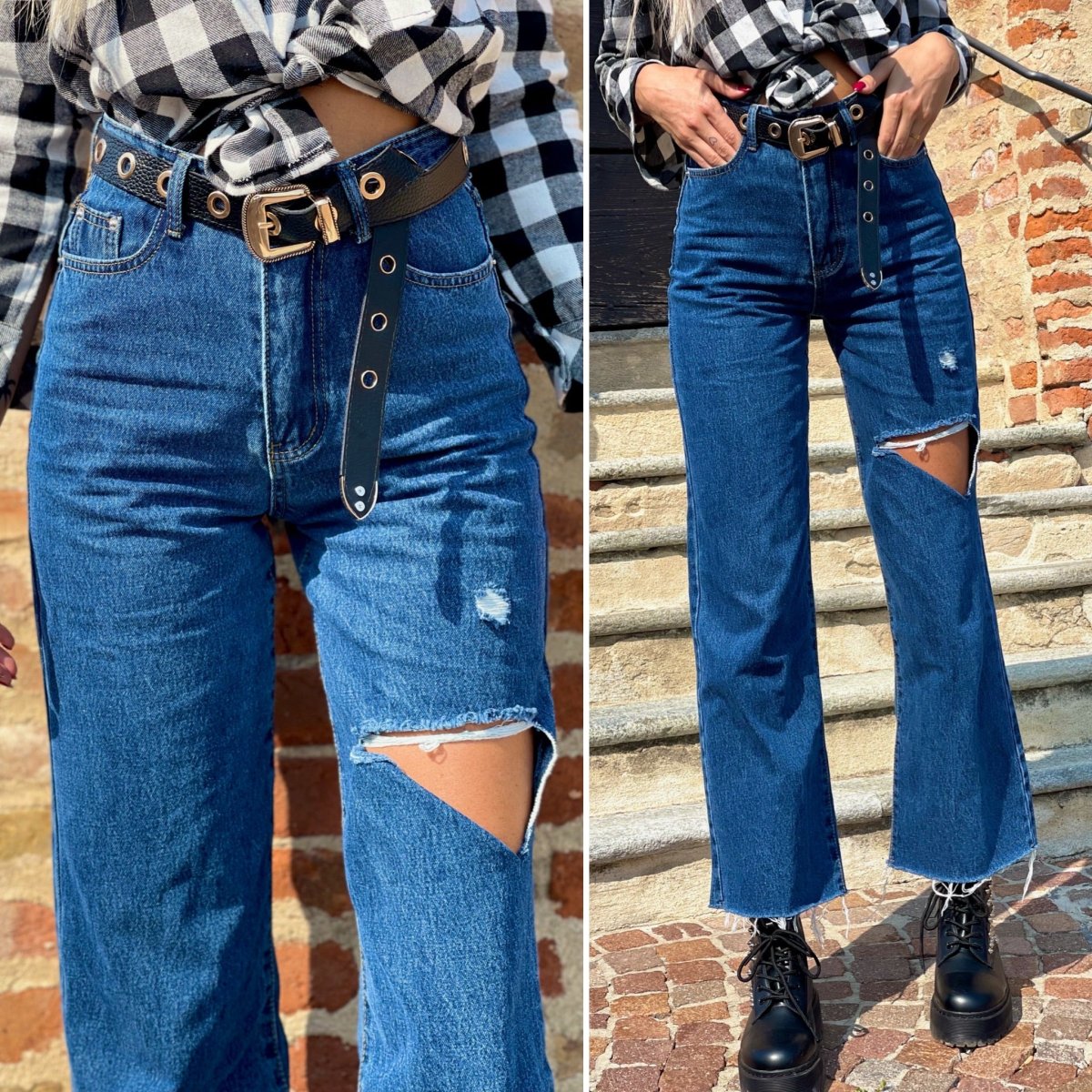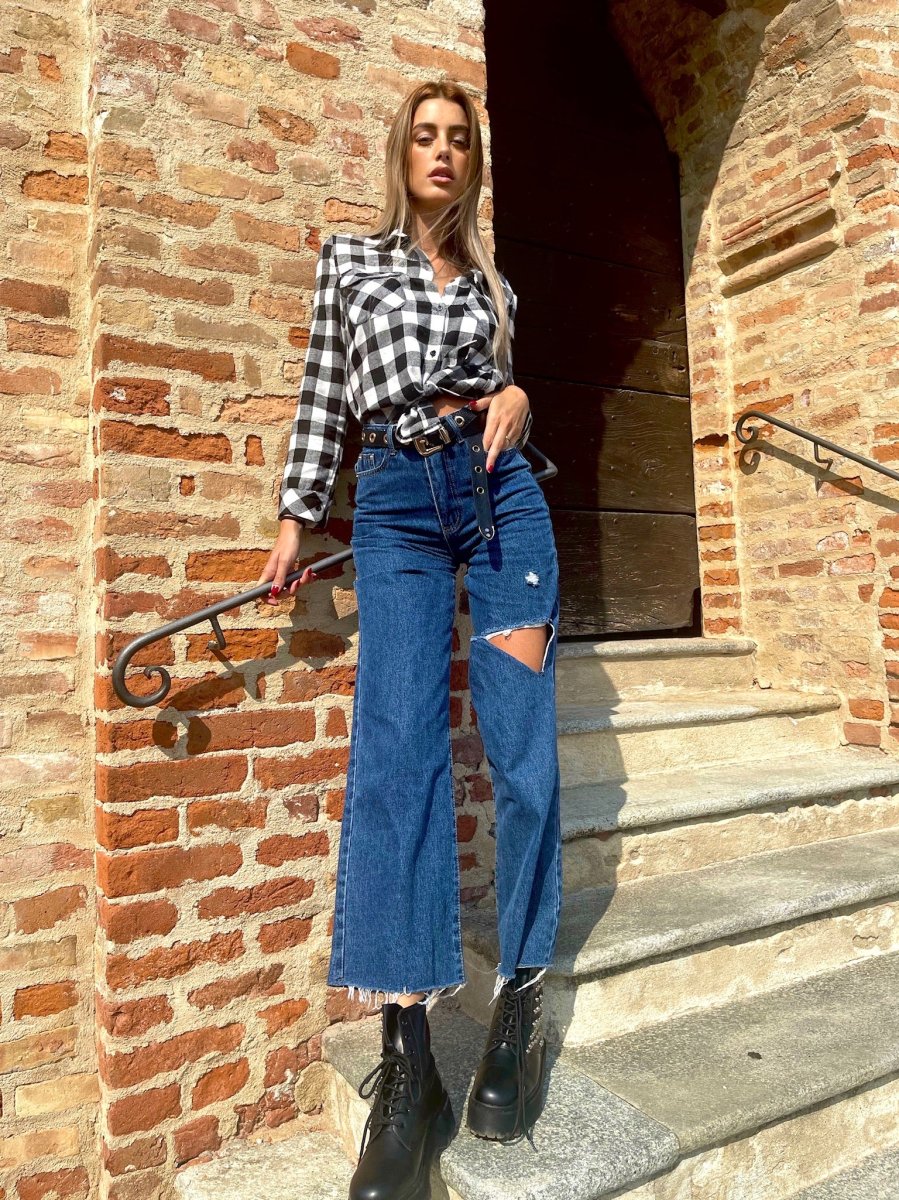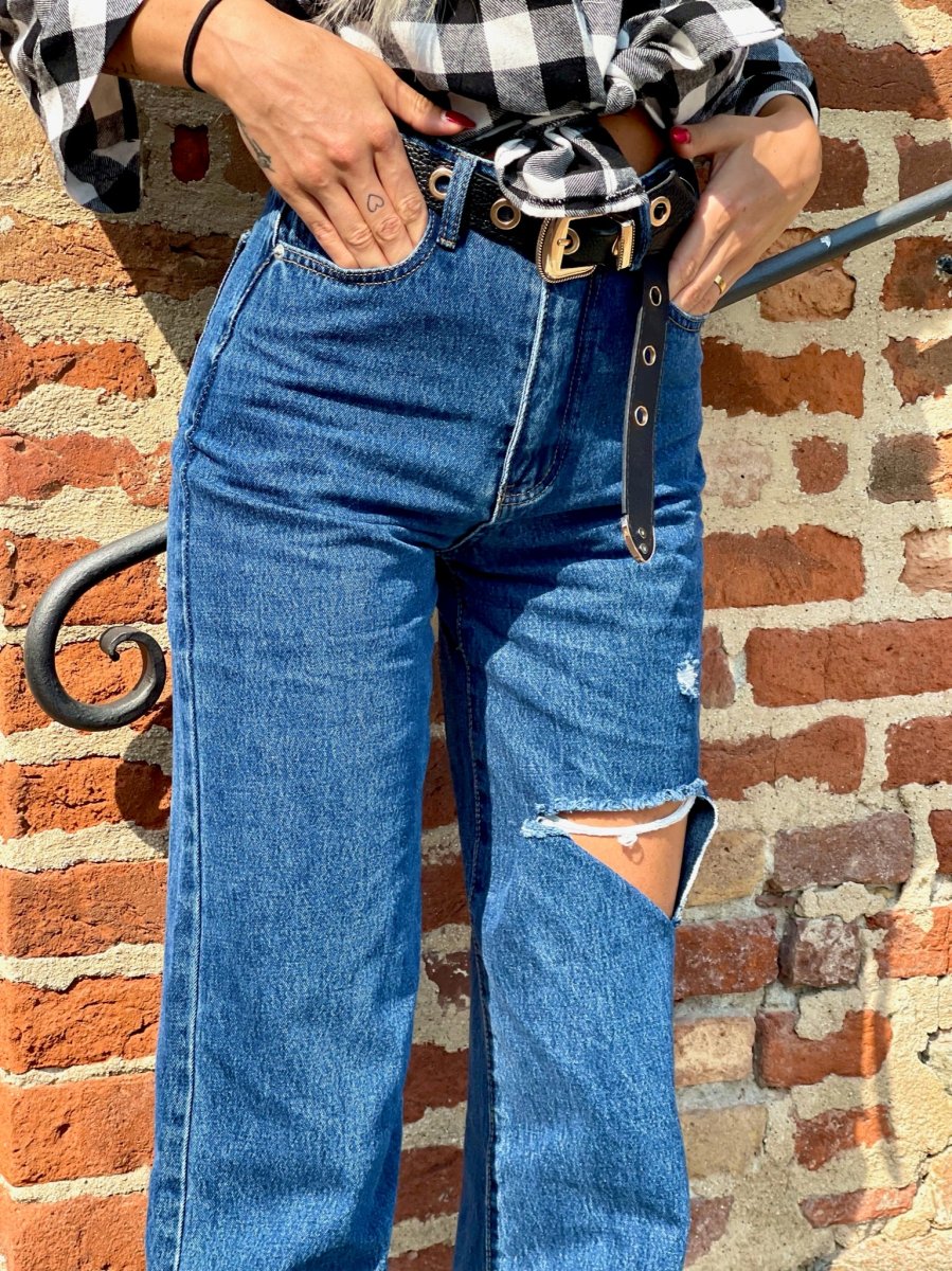 Jeans dalla vestibilità regolare. Gamba ampia morbida e spacco. Colorazione media