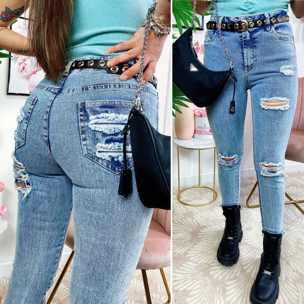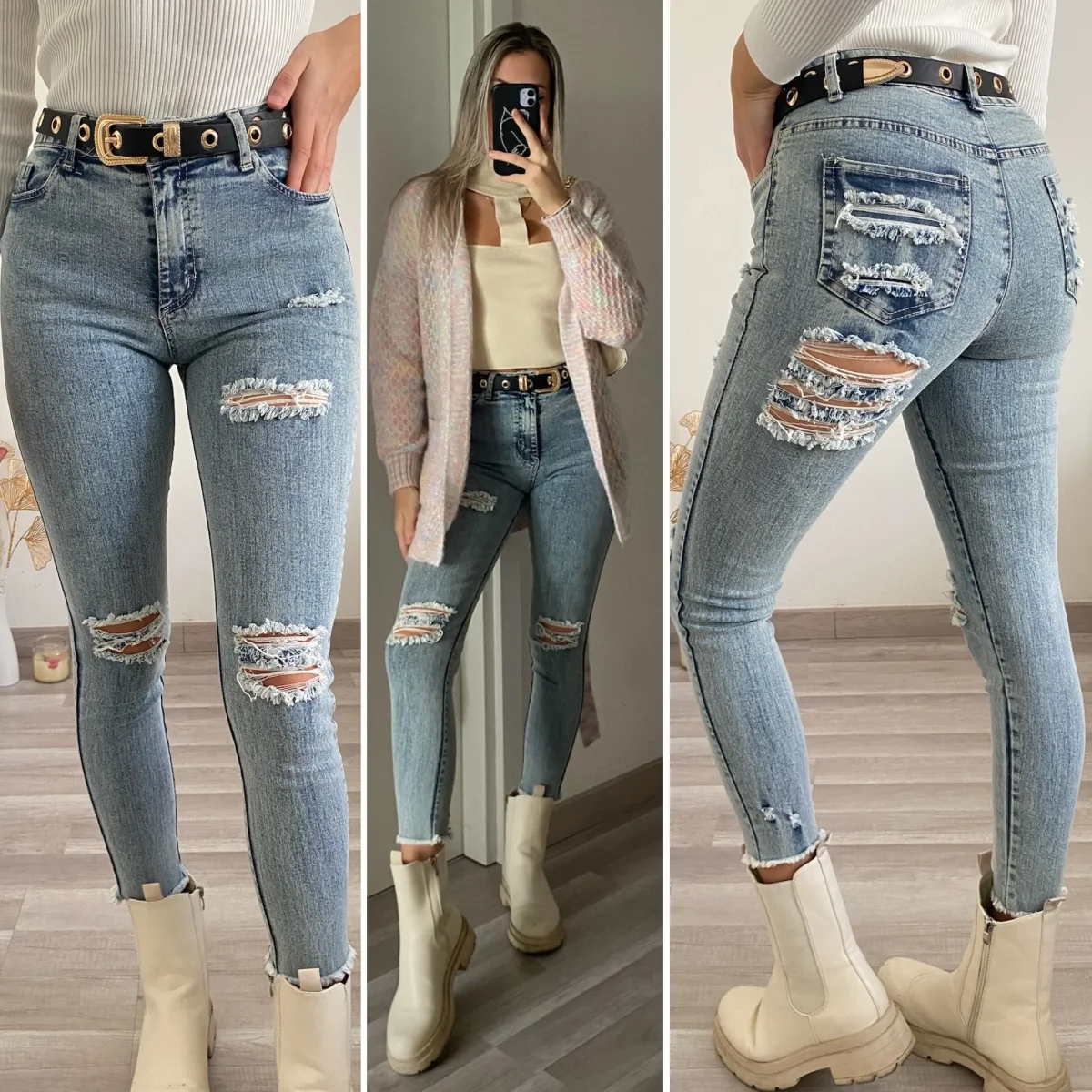 Jeans con strappi bagno chiaro