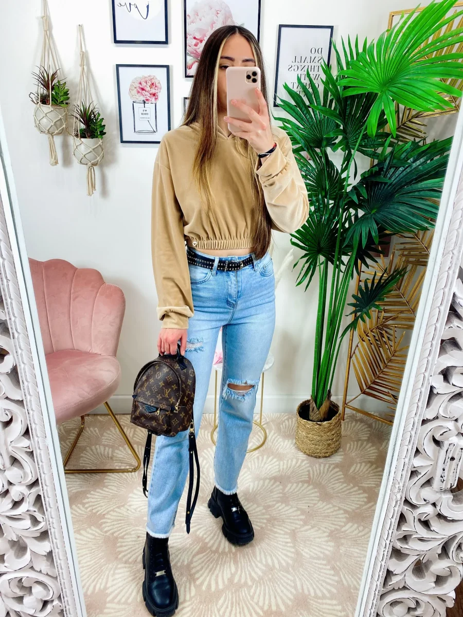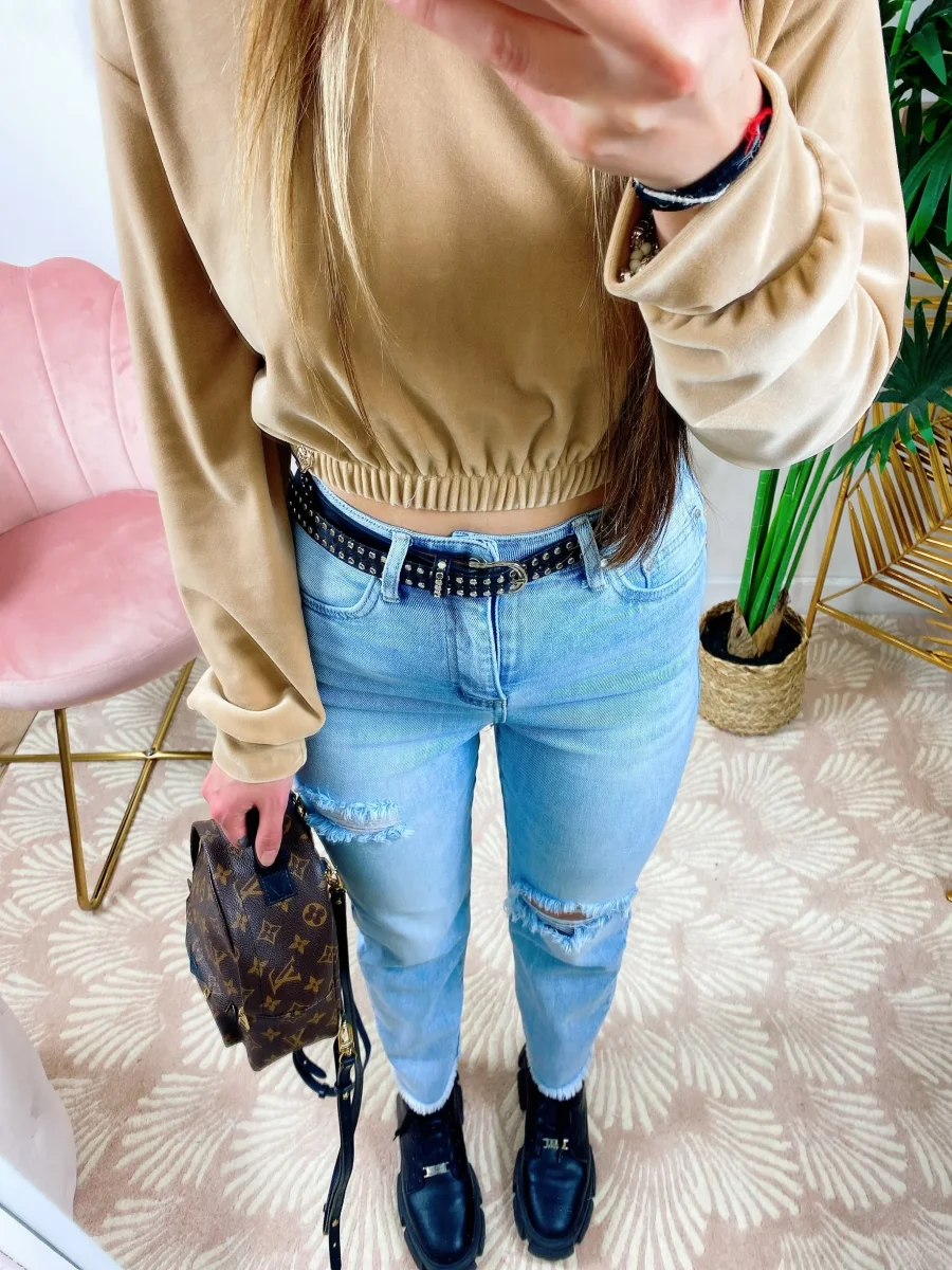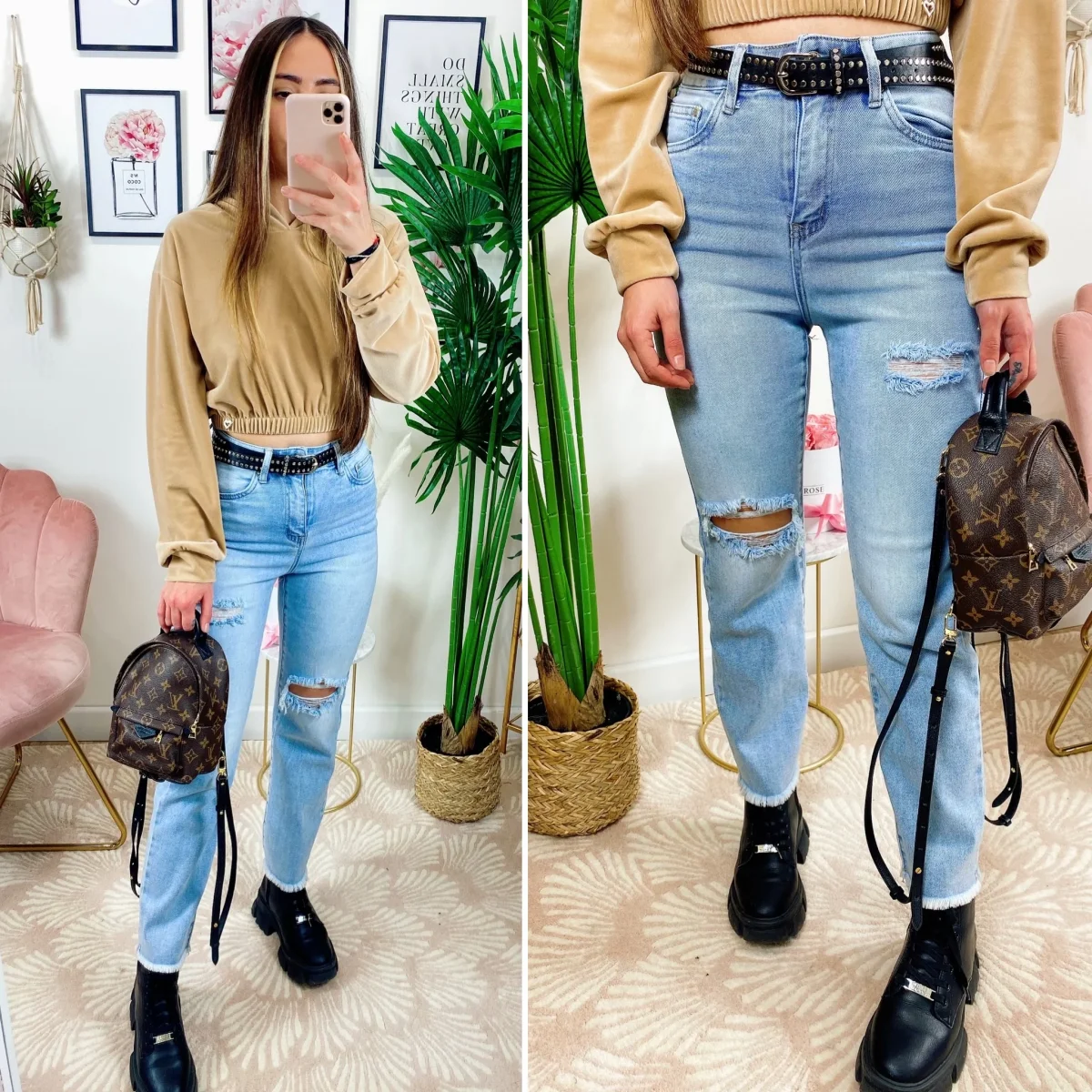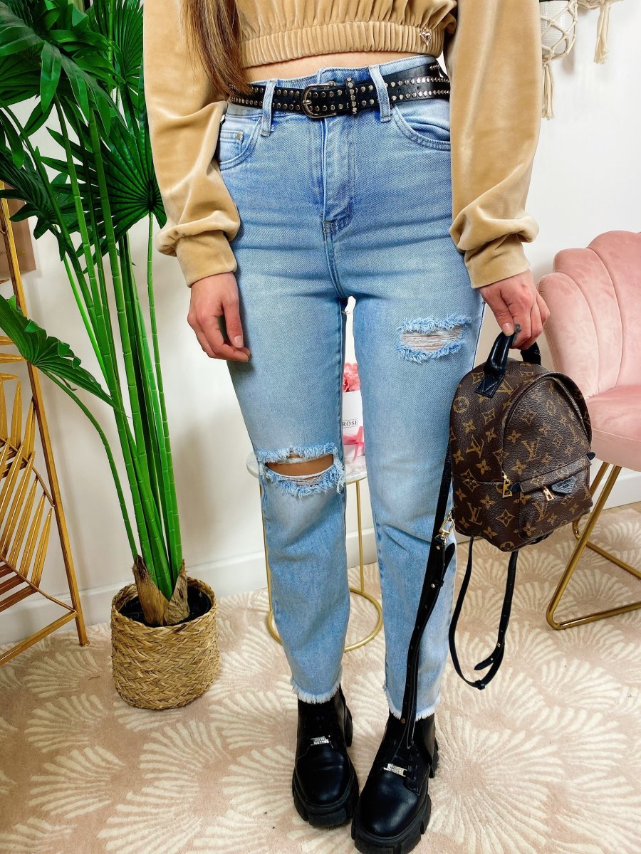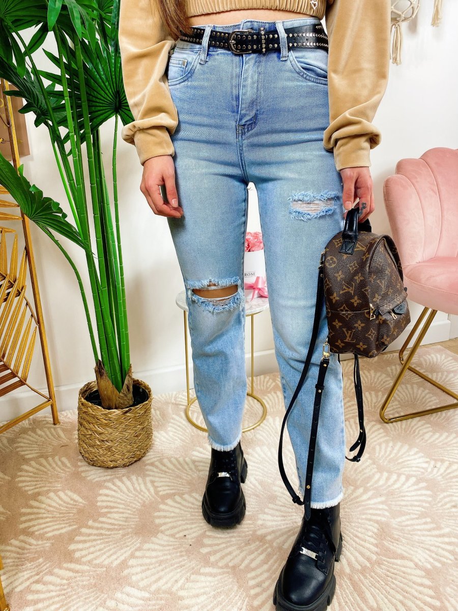 Jeans con strappi e borchie argento dal bagno chiaro calzata regolare.