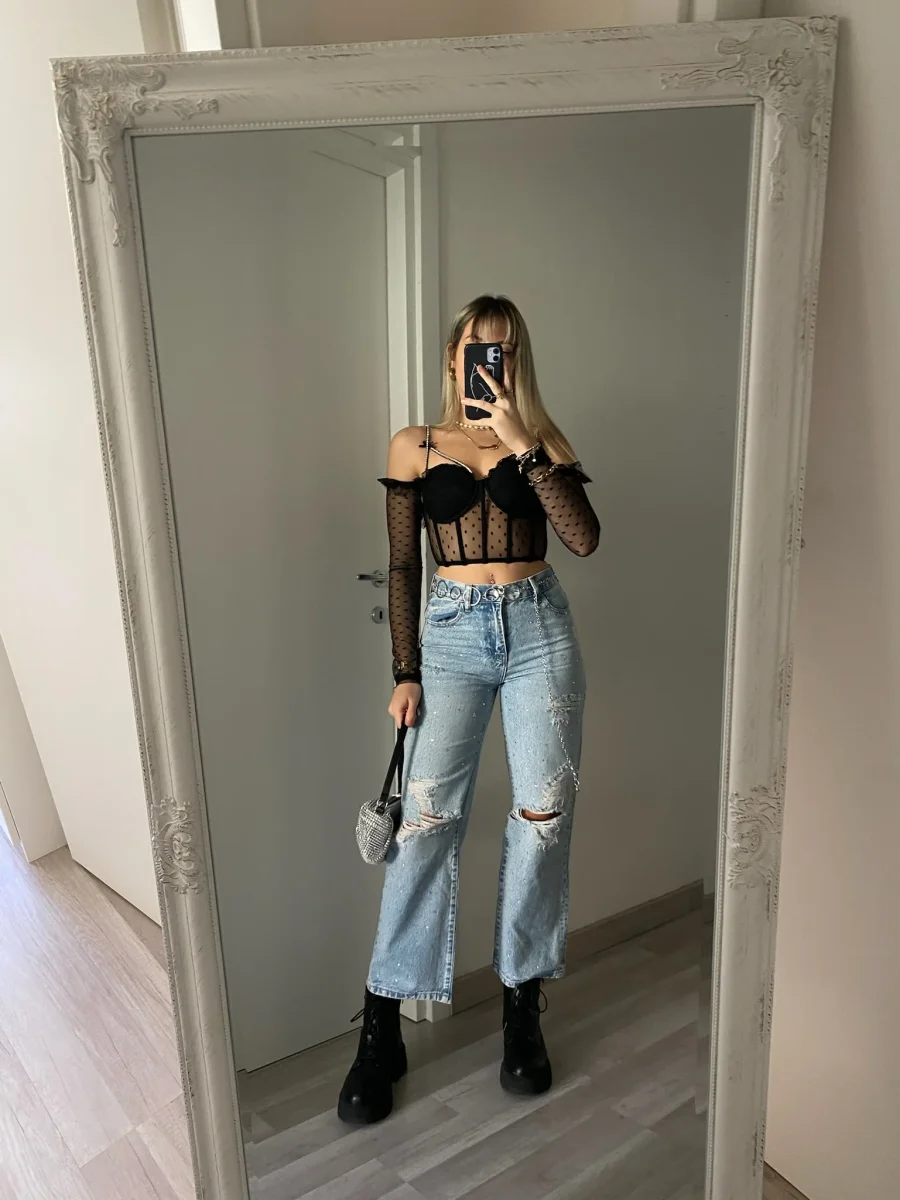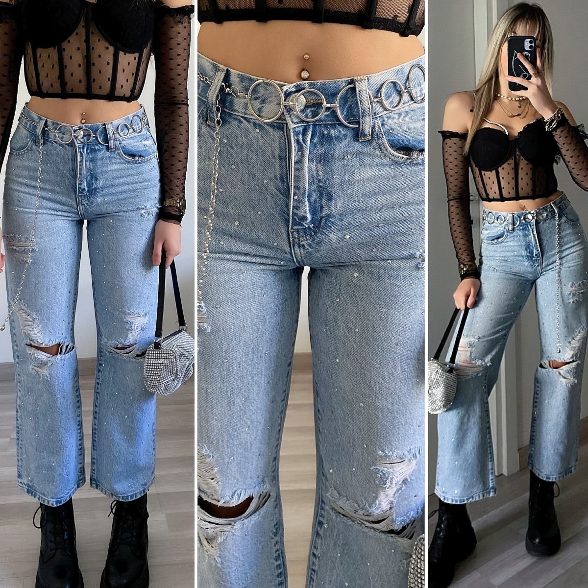 Jeans ampio dalla vestibilità regolare, modello con strass .