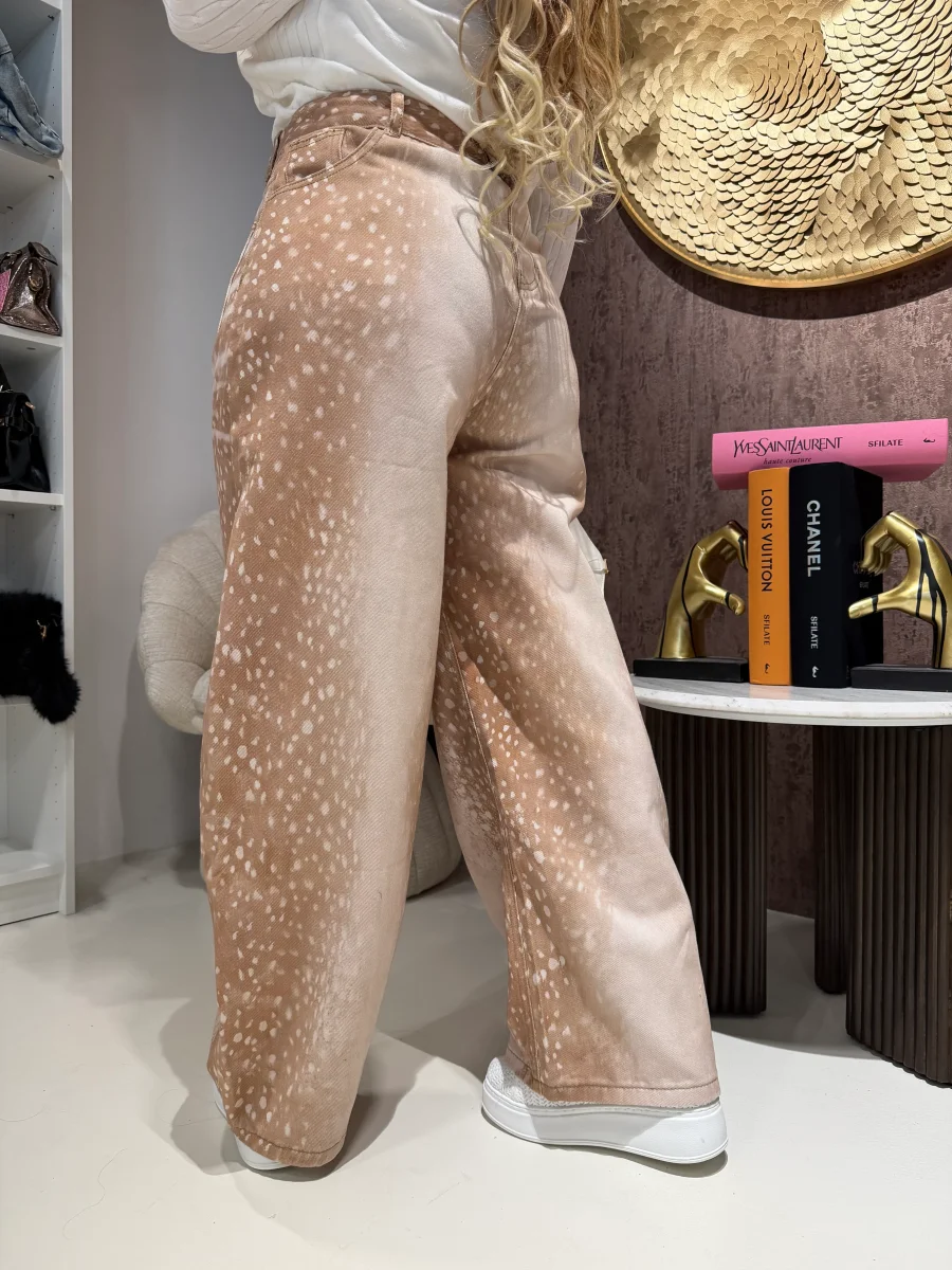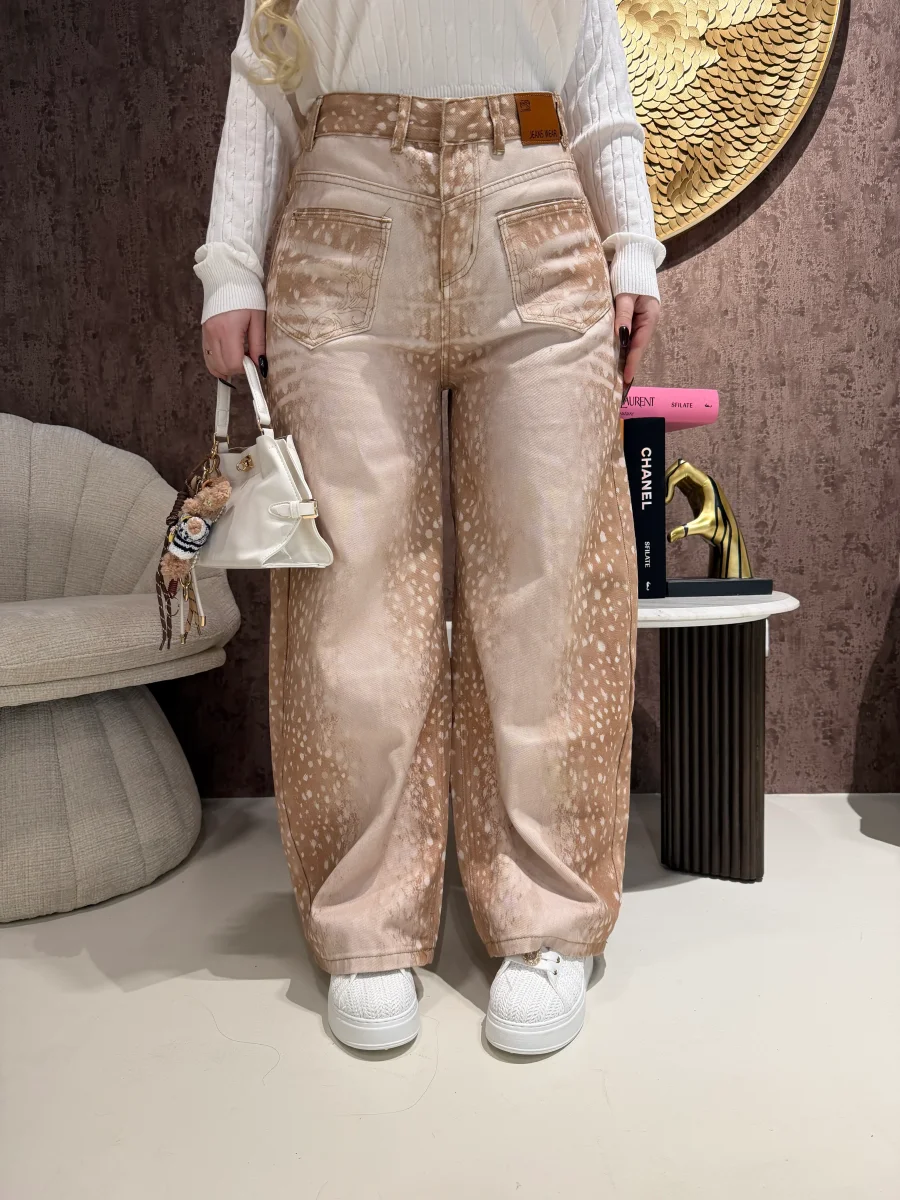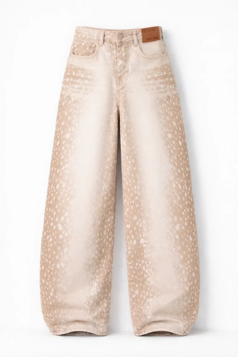 Elegante, raffinato e super di tendenza 🤍 Il Desert Glow Wide Leg è il jeans perfetto per chi ama i look chic con un tocco originale. Realizzato in denim beige con effetto sfumato e micro pattern che ricorda le tonalità del deserto, dona un look sofisticato e moderno.