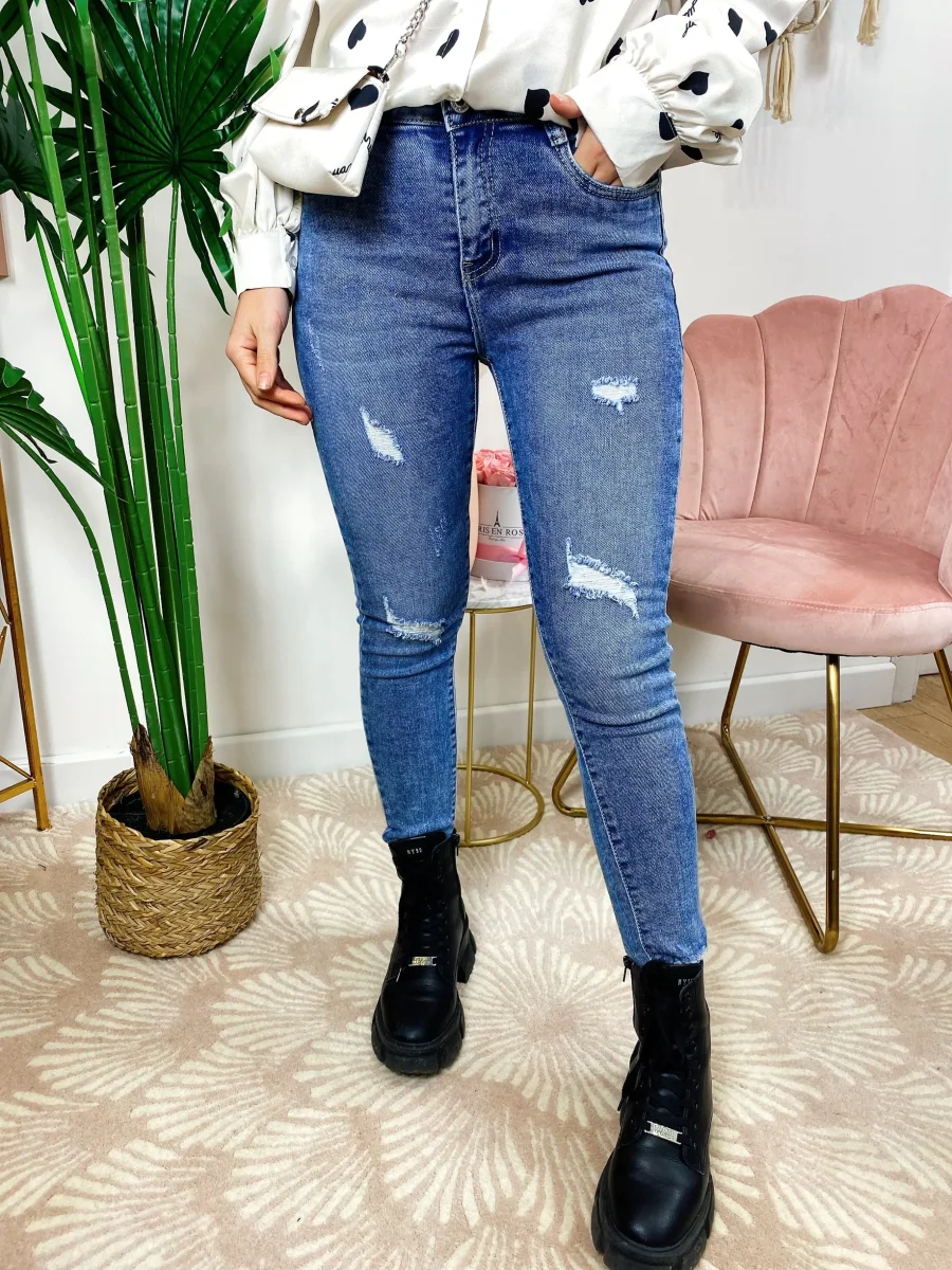 jeans easy con strappi, comodo elasticizzato da tutti i giorni.