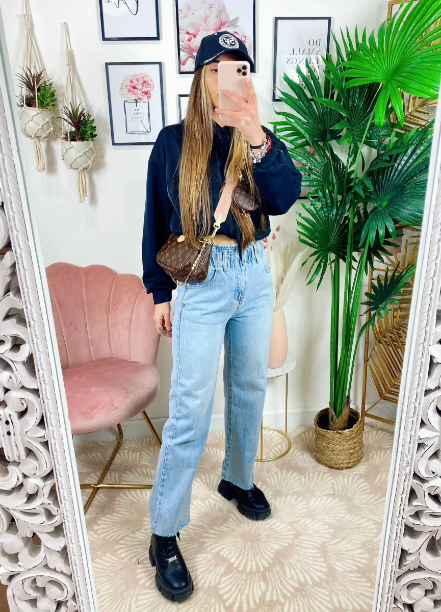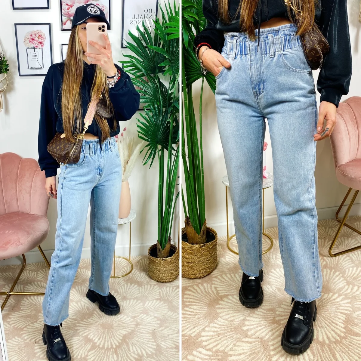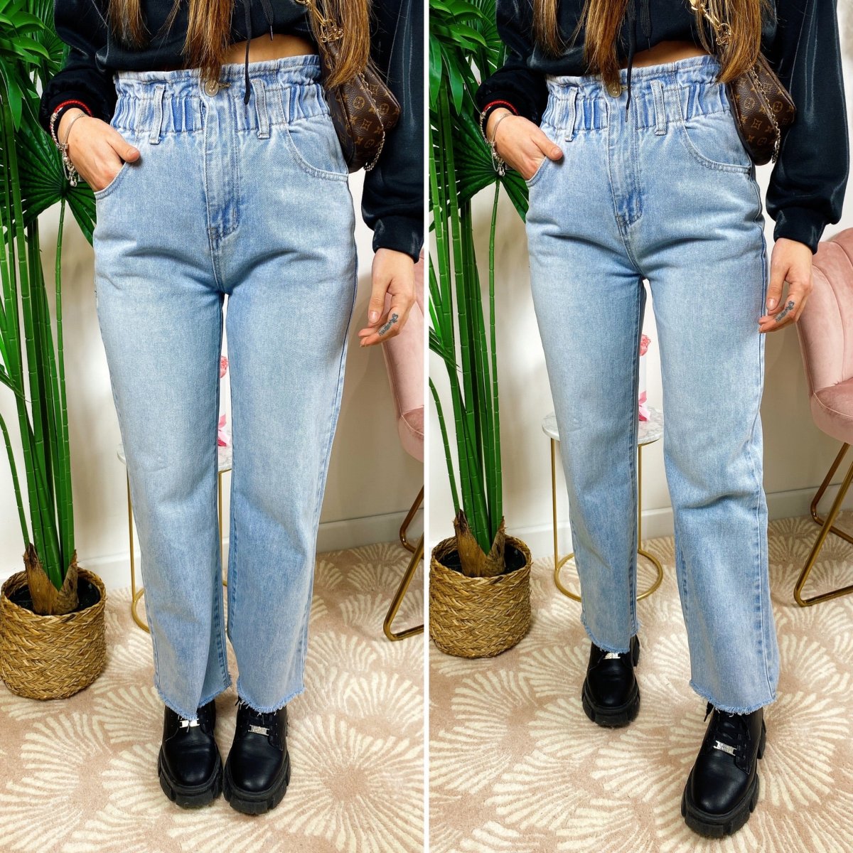 Jeans elasticizzato in vita zampa larga, ottima qualità