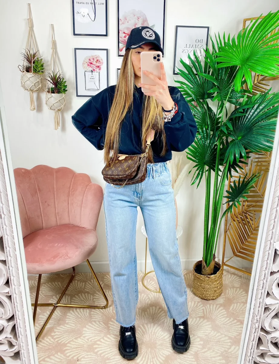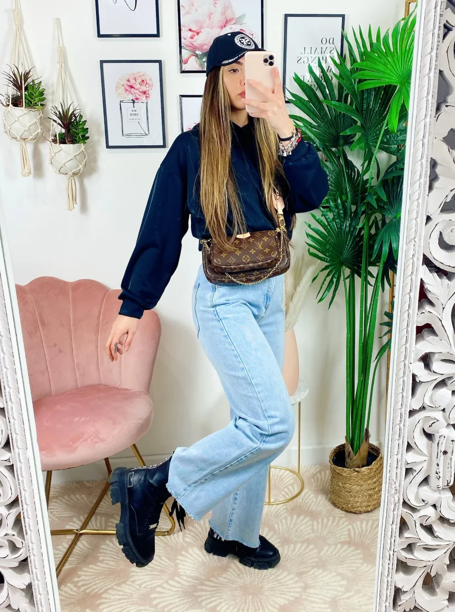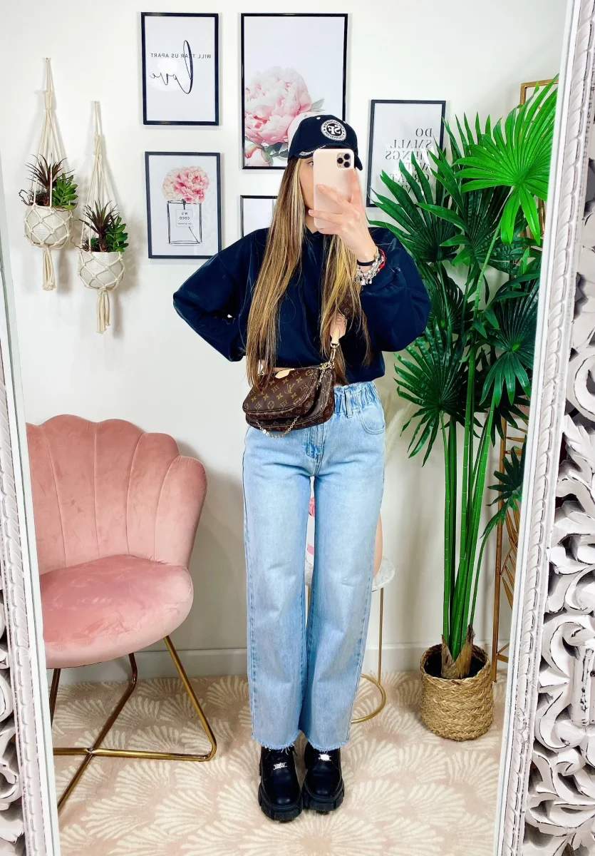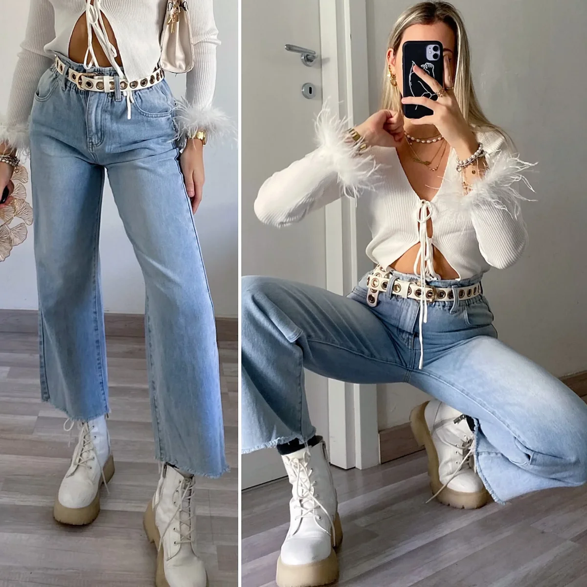 Jeans elasticizzato in vita zampa larga, ottima qualità
